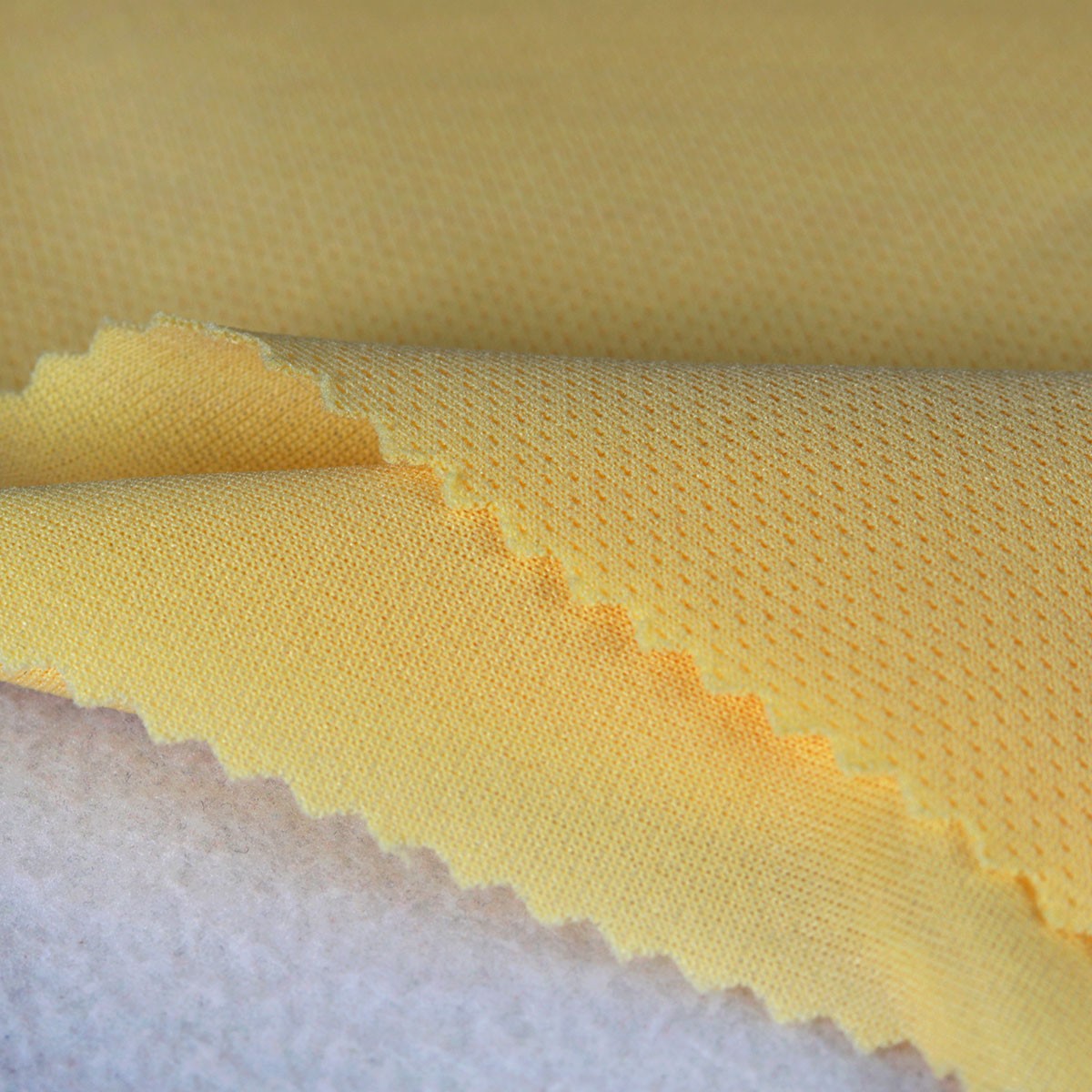 ผ้ากีฬาแบบมี Texture ลายจุด โครงสร้างด้านนึงเรียบ อีกด้านเป็นจุดแบบ Pin hole ช่วยระบายอากาศได้ดี ไม่ขึ้นขน ไม่ยับไม่ย้วย น้ำหนักเบา เหมาะสำหรับทำเสื้อออกกำลังกายเคลื่อนไหวคล่องตัว ระบายอากาศ ซักง่าย แห้งไว ผ้าผ่านงานพิมพ์ได้ทุกรูปแบบ