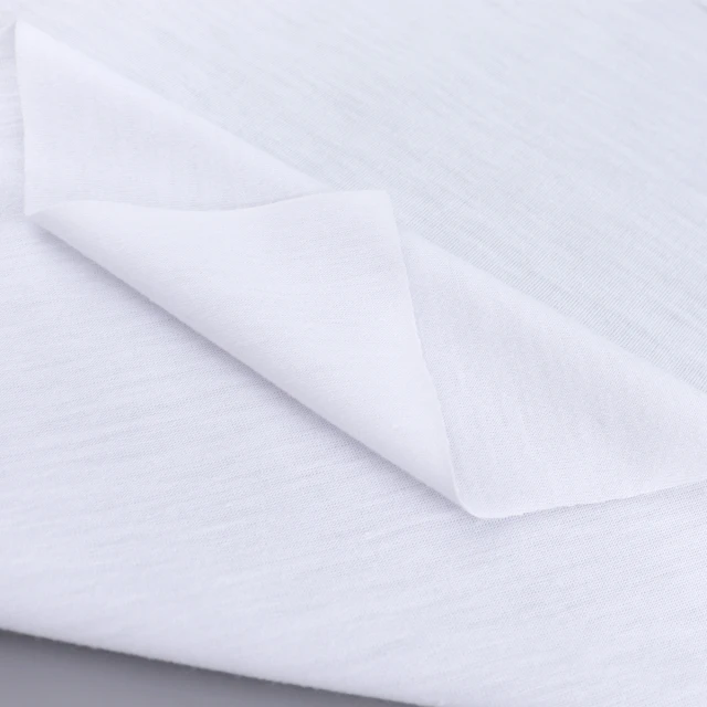 ผ้าทีเค 30 ซิงเกิ้ลเจอร์ซี เนื้อบางเบา สีขาว สัมผัสนุ่มมากคล้ายคอตตอน ยืดแล้ว ไม่ย้วย ไม่ยับ ซักทำความสะอาดง่าย ผ้าไม่หด แห้งไว ระบายอากาศได้ดี เป็นที่นิยมนำไปทำเป็นเสื้อยืด เสื้อทีม สามารถผ่านงานสกรีนหรือพิมพ์ซับลิเมชั่นได้หลากหลายรูปแบบ สีติดคมชัด ลูกค้าส่วนใหย๋หันมาใช้แทนคอตตอนได้