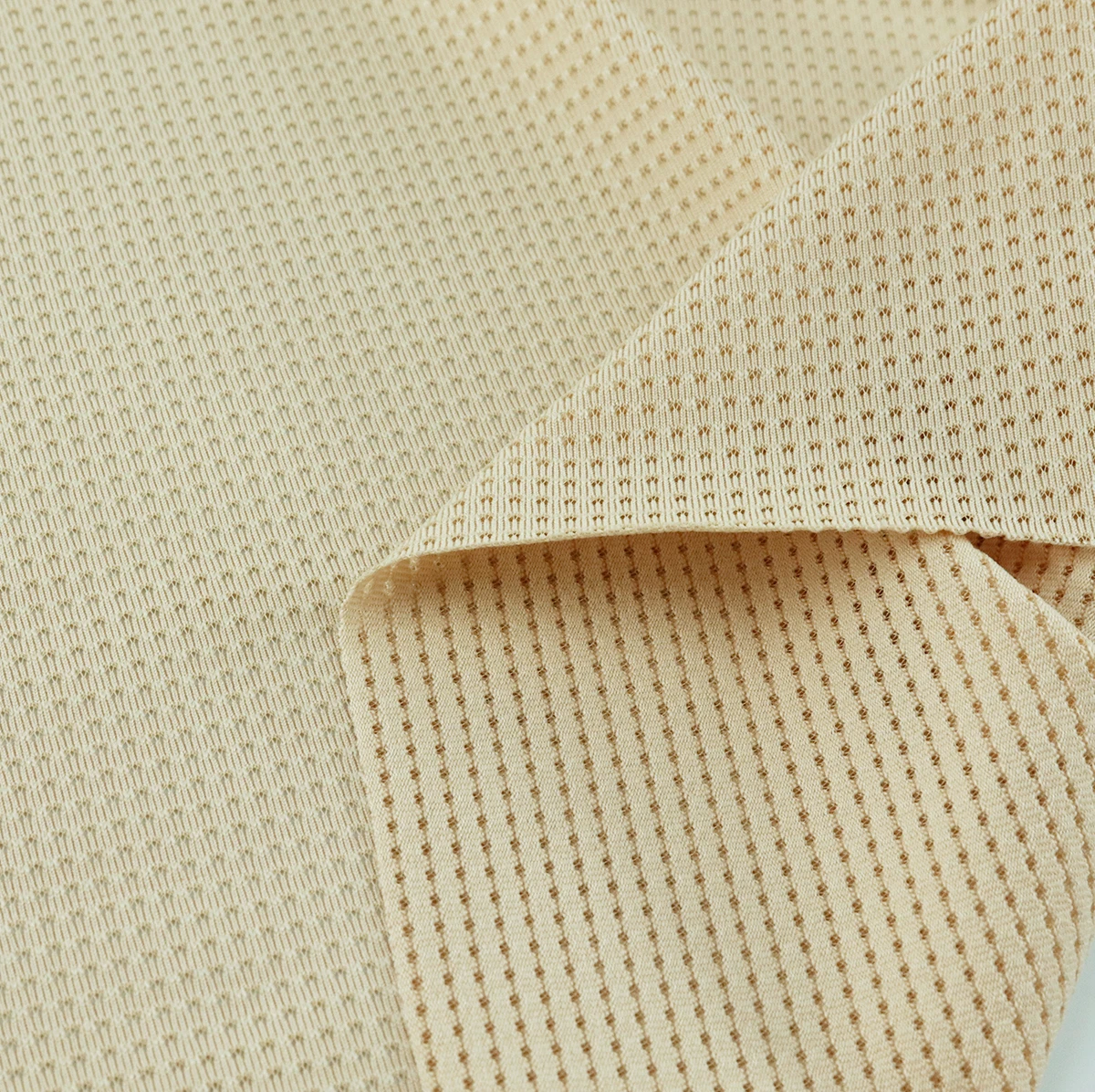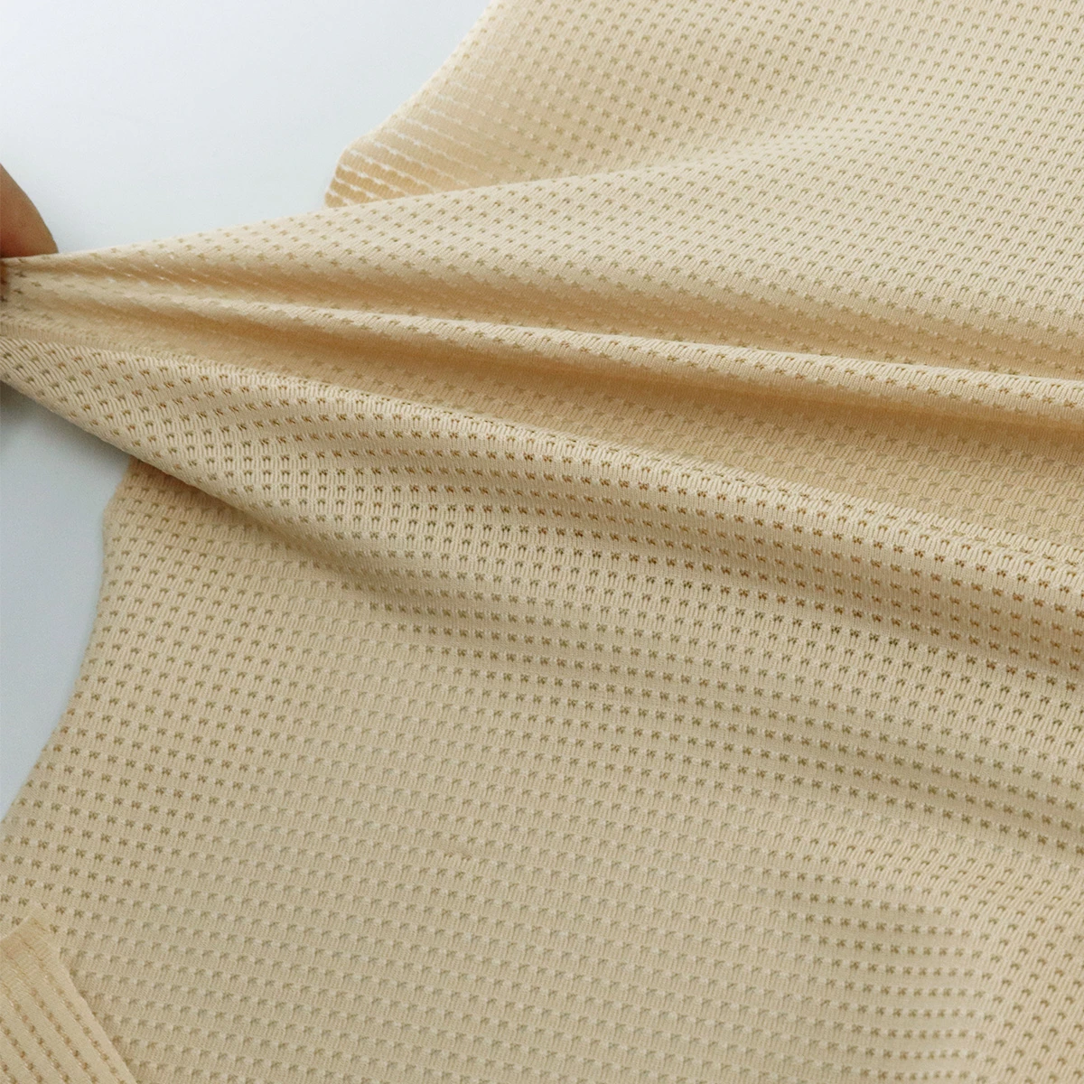ผ้าตาข่ายโพลีเอสเตอร์ ผสมสแปนเด็กซ์18% โพลีเอสเตอร์ 82% ตาข่ายรูเหลี่ยมระบายอากาศดีเยี่ยม แถมยืดหยุ่นทุกทิศทาง ผ้าหน้าเดียว เหมาะสำหรับทำชุดชั้นใน เลกกิ้งเสื้อกางเกงรัดรูป กางเกงใน หรือเสื้อกางเกงกีฬา ตกแต่งเสื้อชั้นใน ผ้ายืดหยุ่นคืนตัว ระบายอากาศ ไม่ยับ ไม่ย้วย ไม่หด ซักทำความสะอาดง่าย แห้งไว