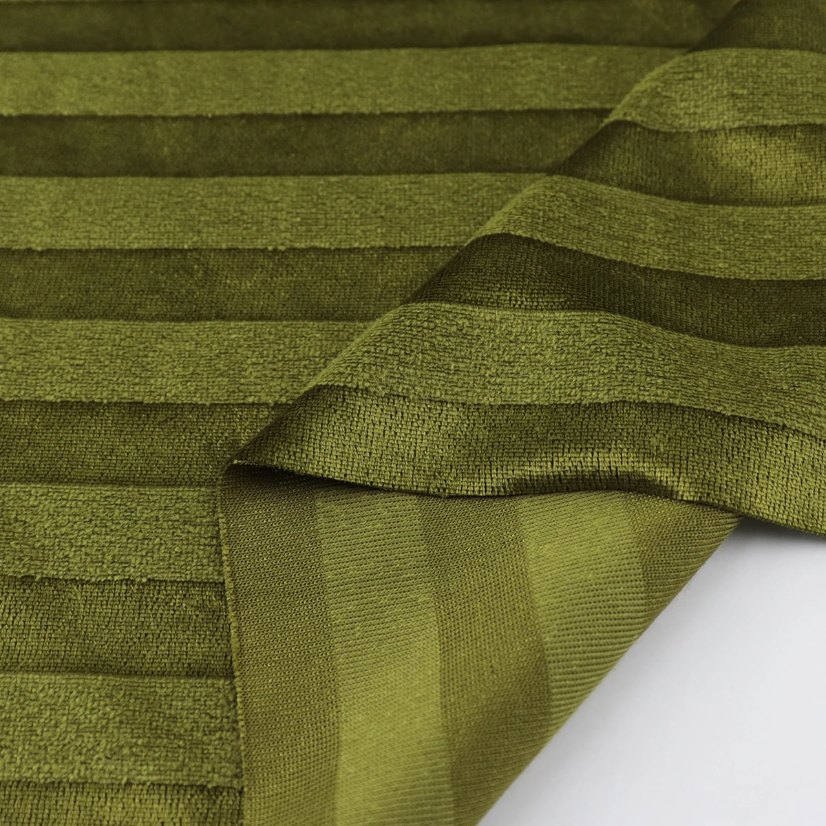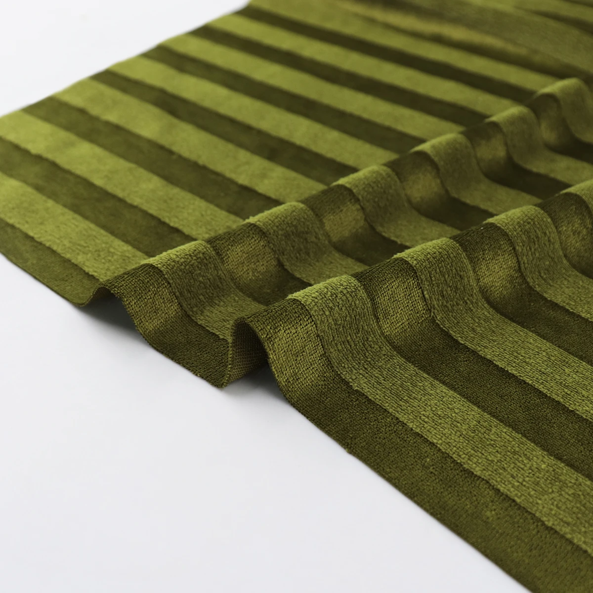 ผ้าร่องใหญ่ เนื้อกำมะหยี่ เนื้อผ้ามีลูกเล่นโดยการใช้เส้นด้าย 2 แบบ ทอสลับกันเพื่อให้เกิดความเงาและด้าน เนื้อผ้าเป็นโครงสร้าง Circular knit ทำให้มีความยืดหยุ่นในตัว ผิวสัมผัสมีความละมุน นุ่ม ขนไม่หลุด