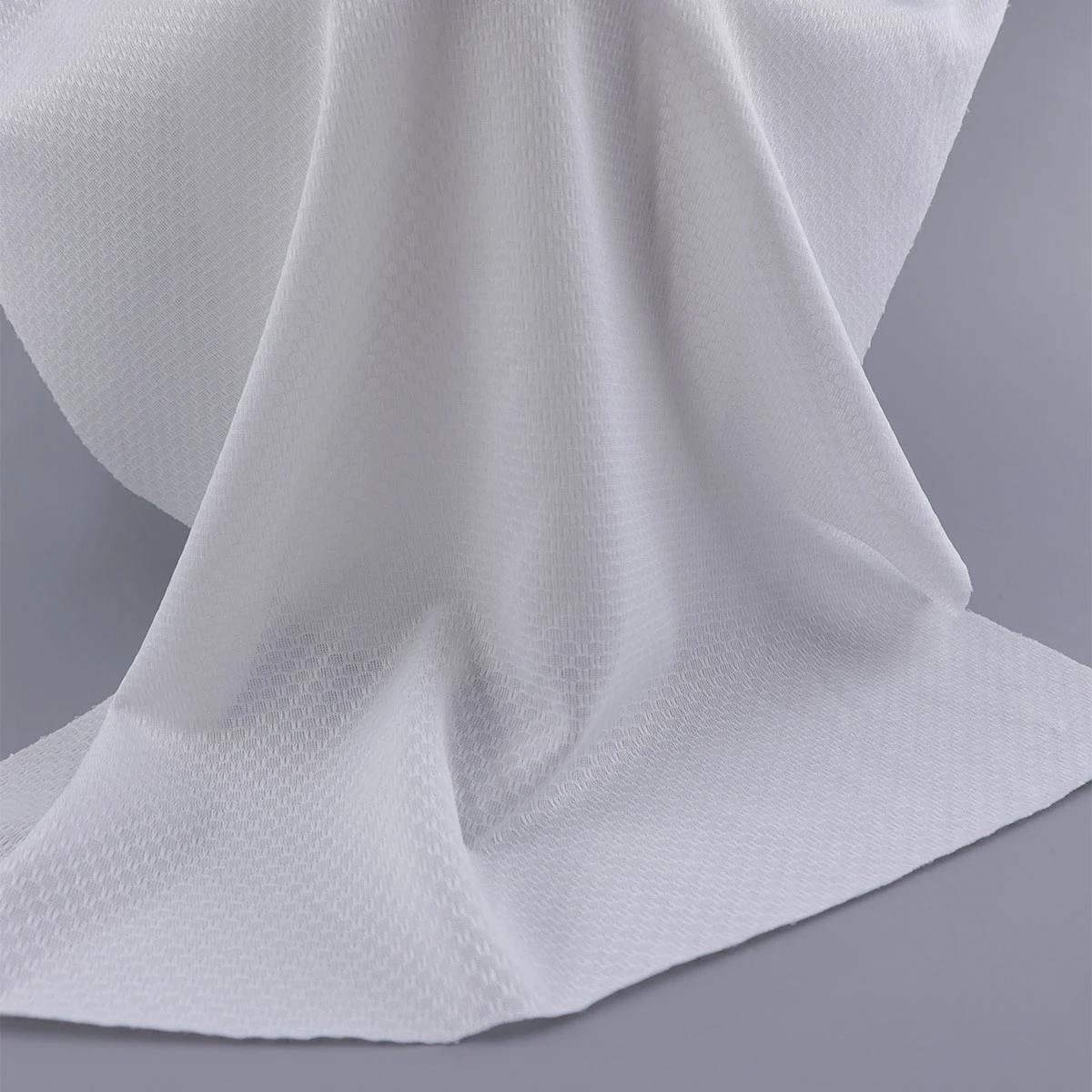 ผ้าบับเบิ้ล เนื้อผ้าโปร่งบาง ทอด้วยเทคนิคพิเศษที่ทำให้เนื้อผ้ามีลวดลายในตัว มีลวดลายคล้ายรังผึ้ง เนื้อผ้ายืดหยุ่นได้ดีระดับนึง โครงสร้างที่โปร่งเบานี้ สามารถช่วยทำให้เสื้อผ้า ถ่ายเทอากาศได้ดี แห้งเร็ว นิยมนำไปทำเสื้อออกกำลังกาย เช่น เสื้อวิ่ง เสื้อตกปลา เสื้อปั่นจักยาน และงานอื่นๆที่ต้องการความโดดเด่นของชิ้นงาน รองรับงานพิมพ์ซับลิเมชั่นได้