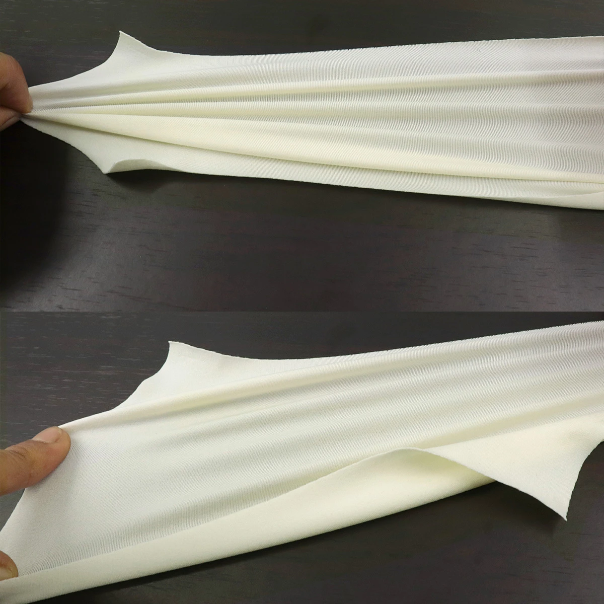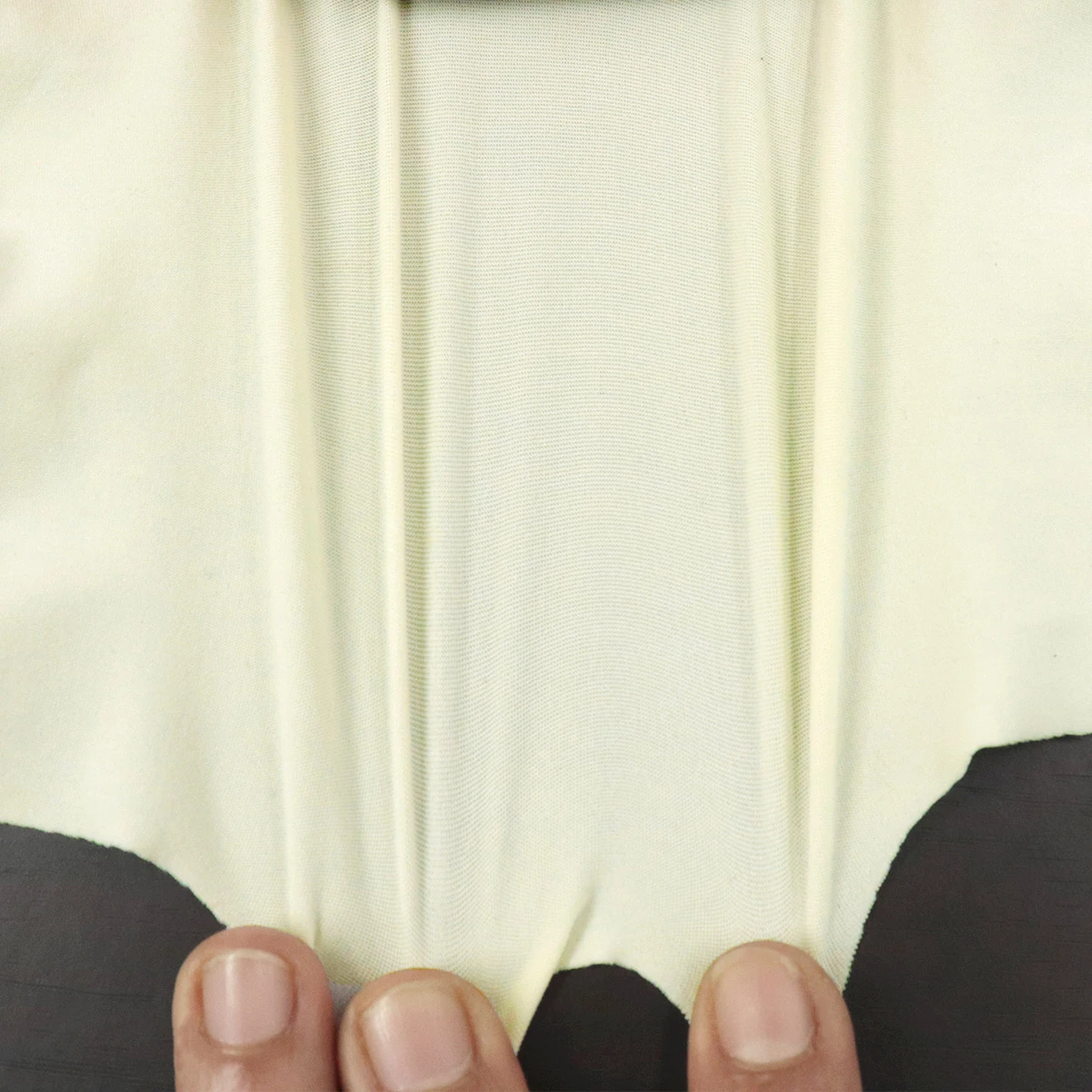 ผ้าเรียบผสมสแปนเด็กซ์ 15% เนื้อเรียบที่สามารถยืดขยายได้มากถึง 5-7 เท่าและหดกลับมาอยู่ในสภาพเดิม เนื้อผ้ามีความละเอียด บางเบา แต่แข็งแรง มีความโดดเด่นในเรื่องการระบายเหงื่อได้ดี เหมาะกับทำเสื้อผ้ารัดรูป เลกกิ้ง ชุดออกกำลังกาย ชุดโยคะ ชุดปั่นจักรยาน ชุดว่ายน้ำแบบแฟชั่น เสื้อซับใน กางเกงเลคกิ้ง ชุดชั้นใน ปลอกแขน โม่ง ผ้าคลุมเก้าอี้โรงแรม ผ้าอินเนอร์คลุมผม