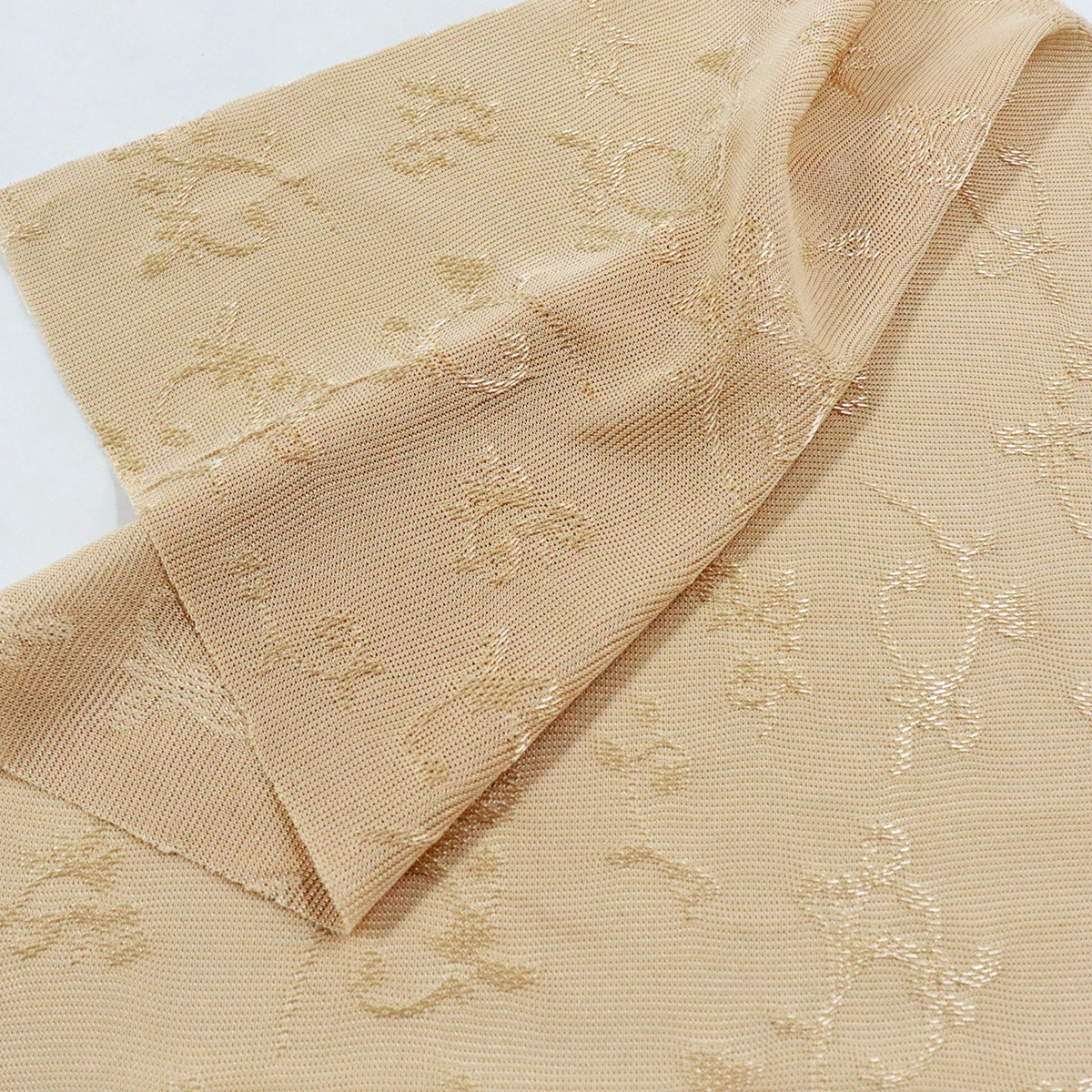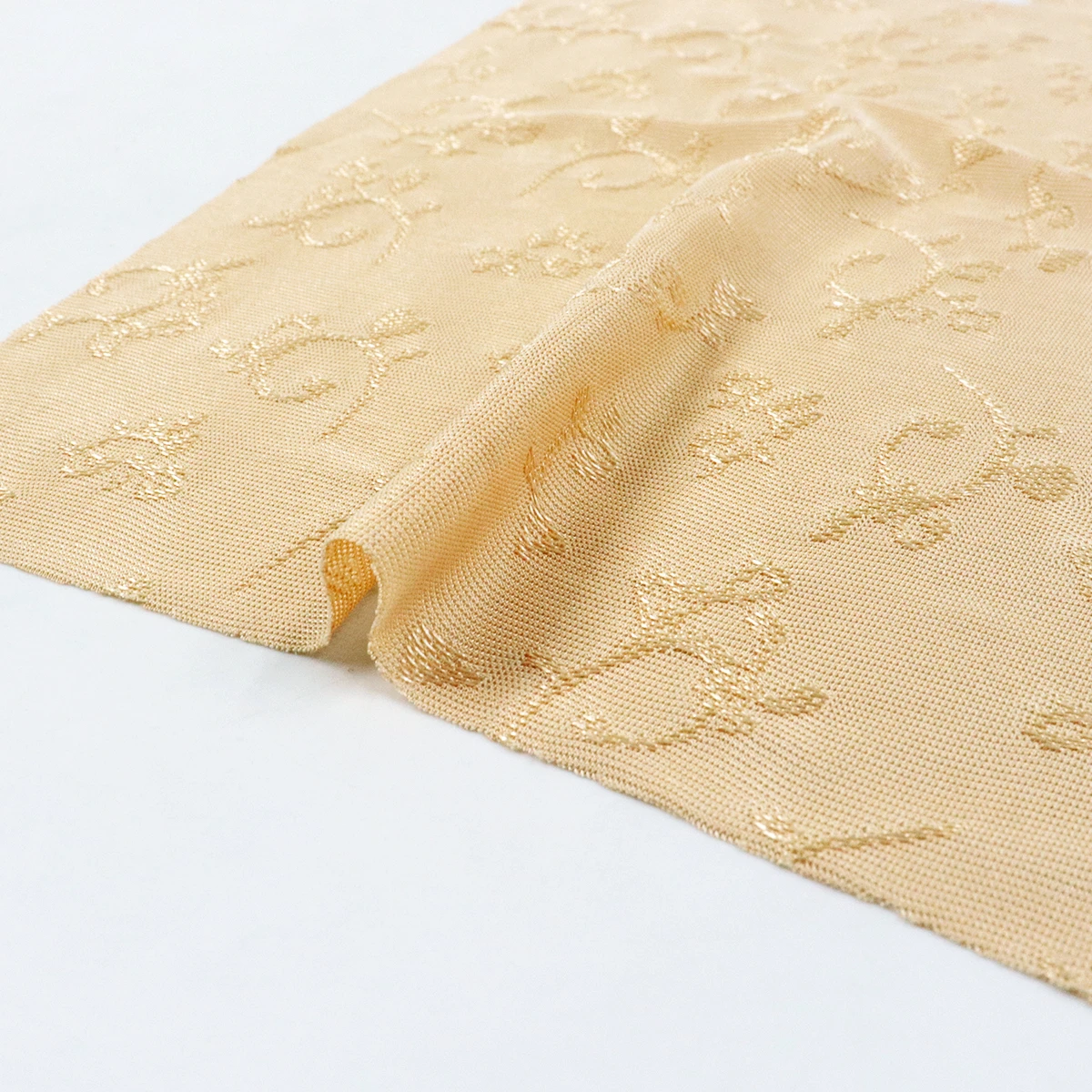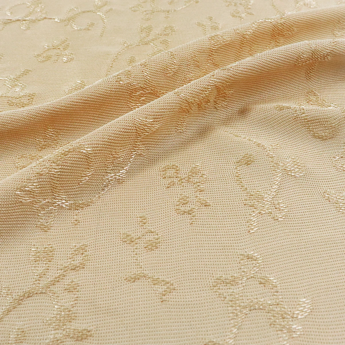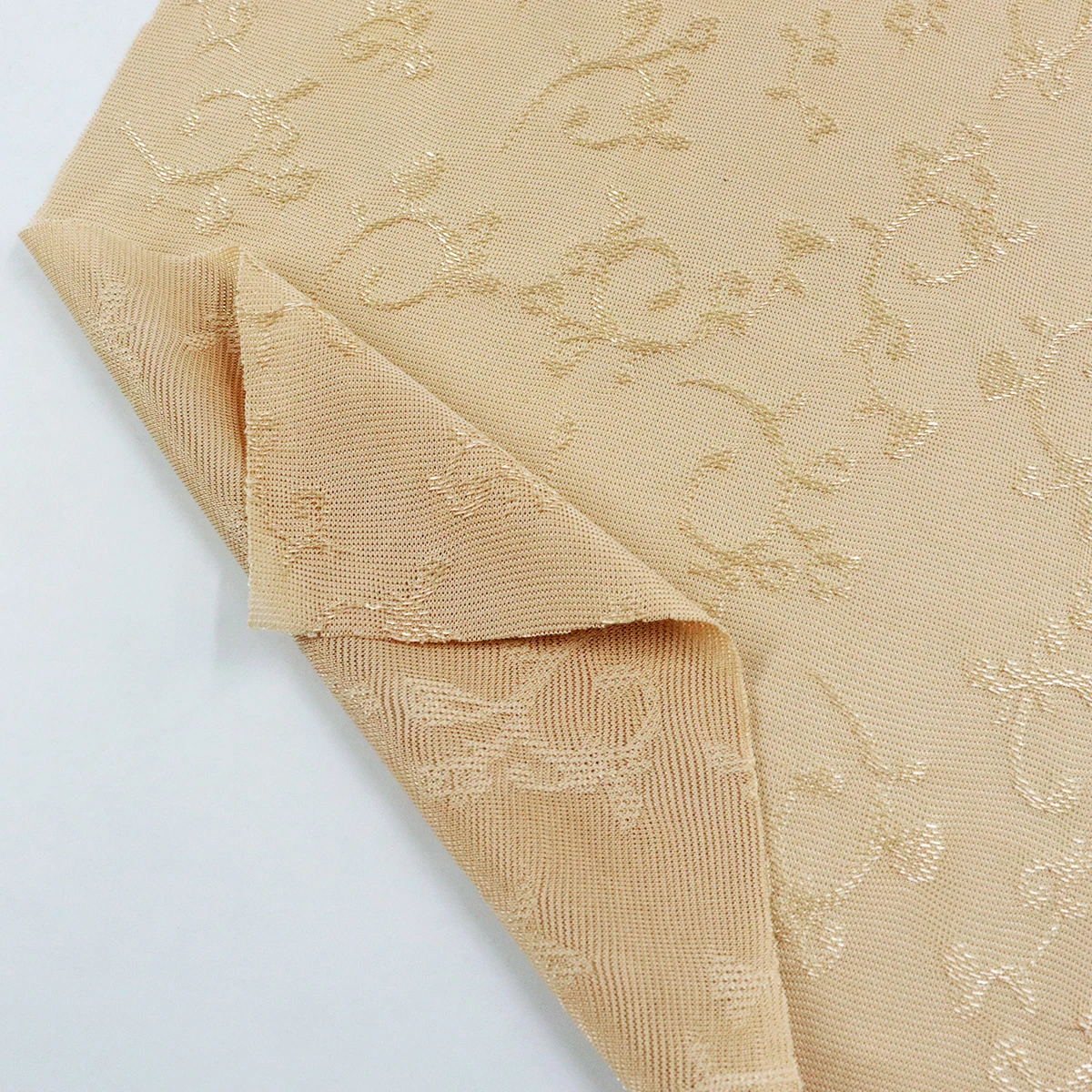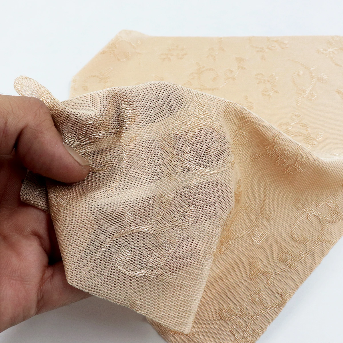 ผ้าซับในลูกไม้ ทอแบบแจ็คการ์ด ใช้งานด้านที่มีลายนูน มีความเงานิดๆ ในลาย ผ้าไม่ค่อยยืด แต่ระบายอากาศดี เหมาะกับใช้ทำเป็นซับในเสื้อ หรือกระโปรง ตกแต่งชุดชั้นใน หรือใช้ทำผ้าม่าน