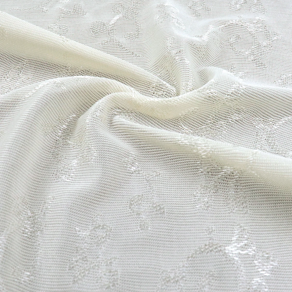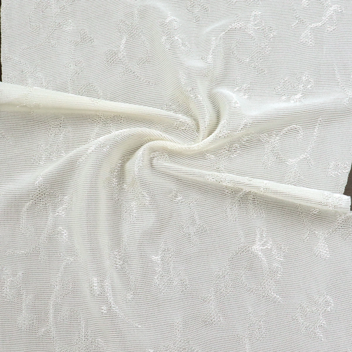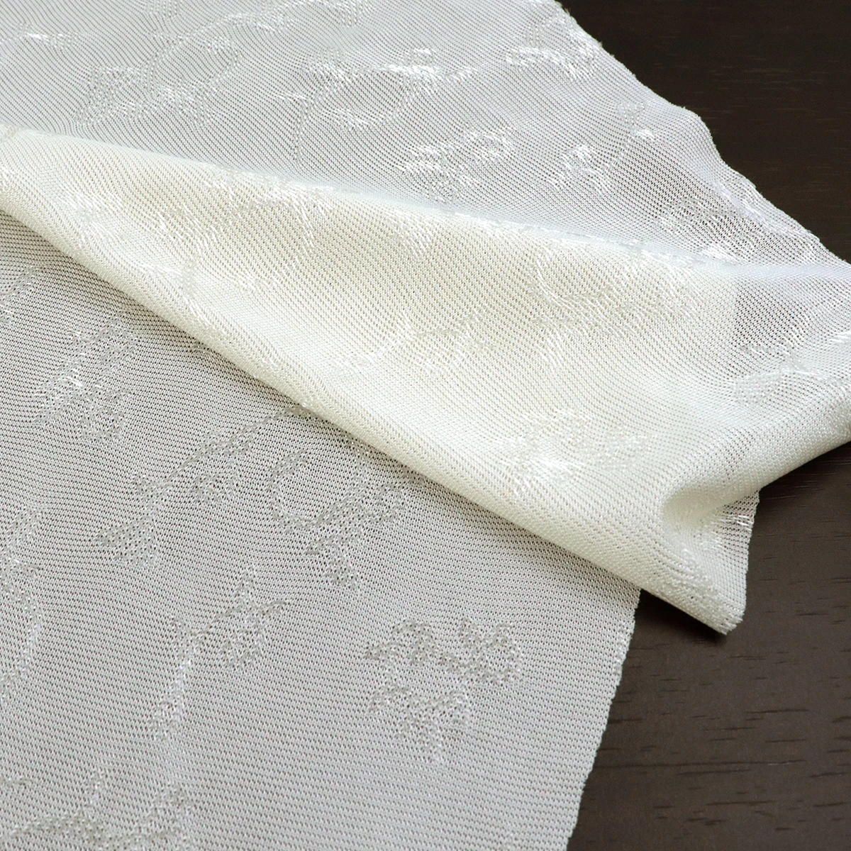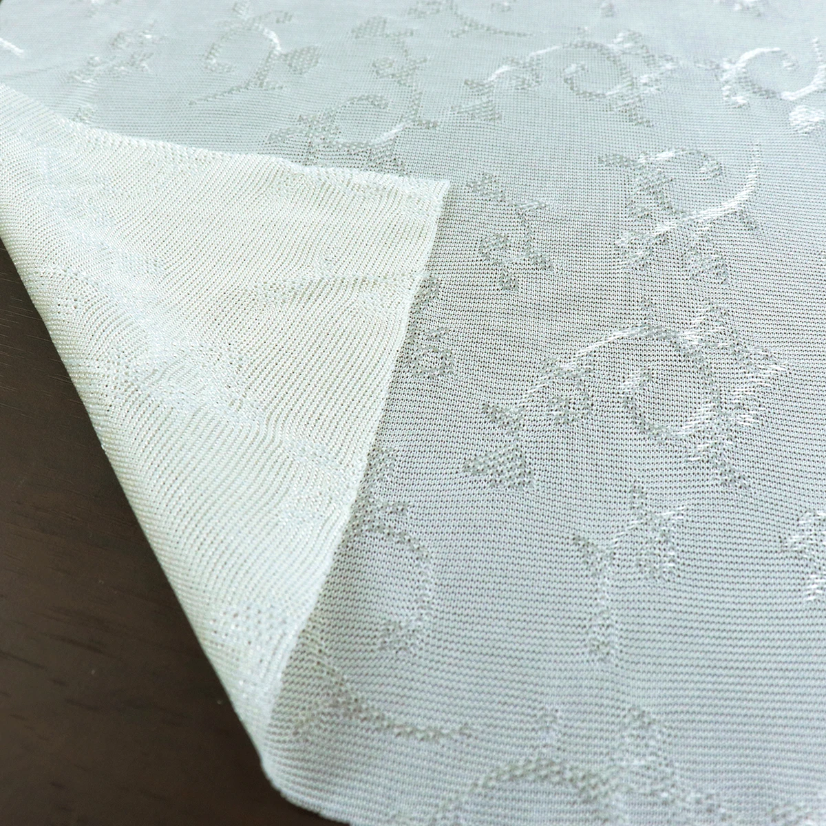 ผ้าซับในลูกไม้ ทอแบบแจ็คการ์ด ใช้งานด้านที่มีลายนูน มีความเงานิดๆ ในลาย ผ้าไม่ค่อยยืด แต่ระบายอากาศดีเหมาะกับใช้ทำเป็นซับในเสื้อ หรือกระโปรง หรือใช้ทำผ้าม่านได้