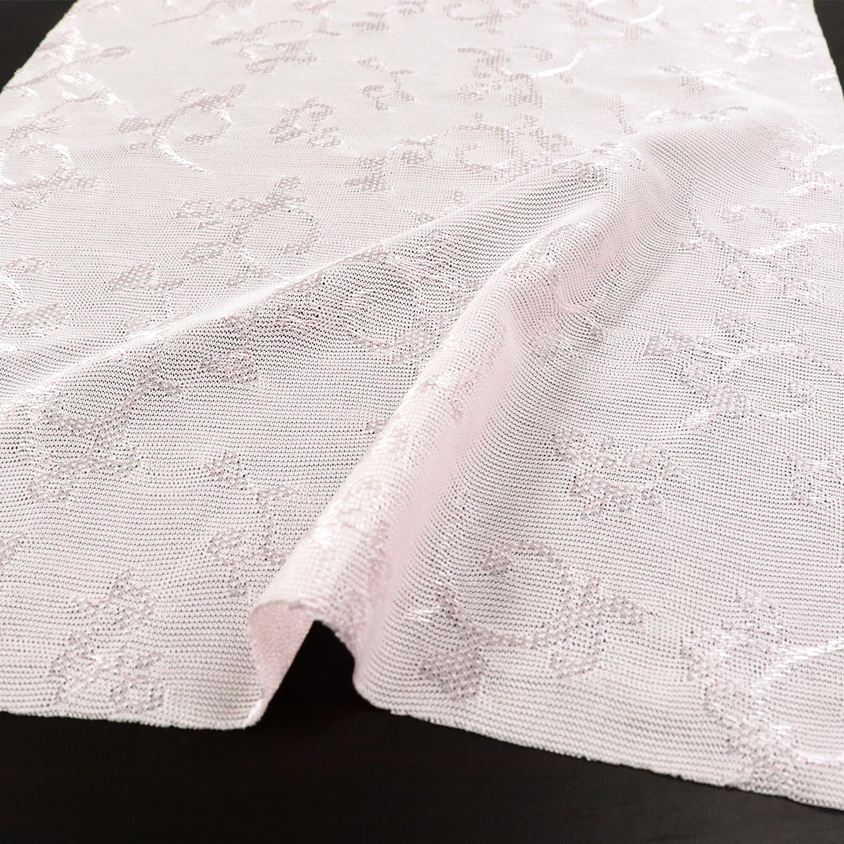 ผ้าซับในลูกไม้ ทอแบบแจ็คการ์ด ใช้งานด้านที่มีลายนูน มีความเงานิดๆ ในลาย ผ้าไม่ค่อยยืด แต่ระบายอากาศดี เหมาะกับใช้ทำเป็นซับในเสื้อ หรือกระโปรง ตกแต่งชุดชั้นใน หรือใช้ทำผ้าม่าน