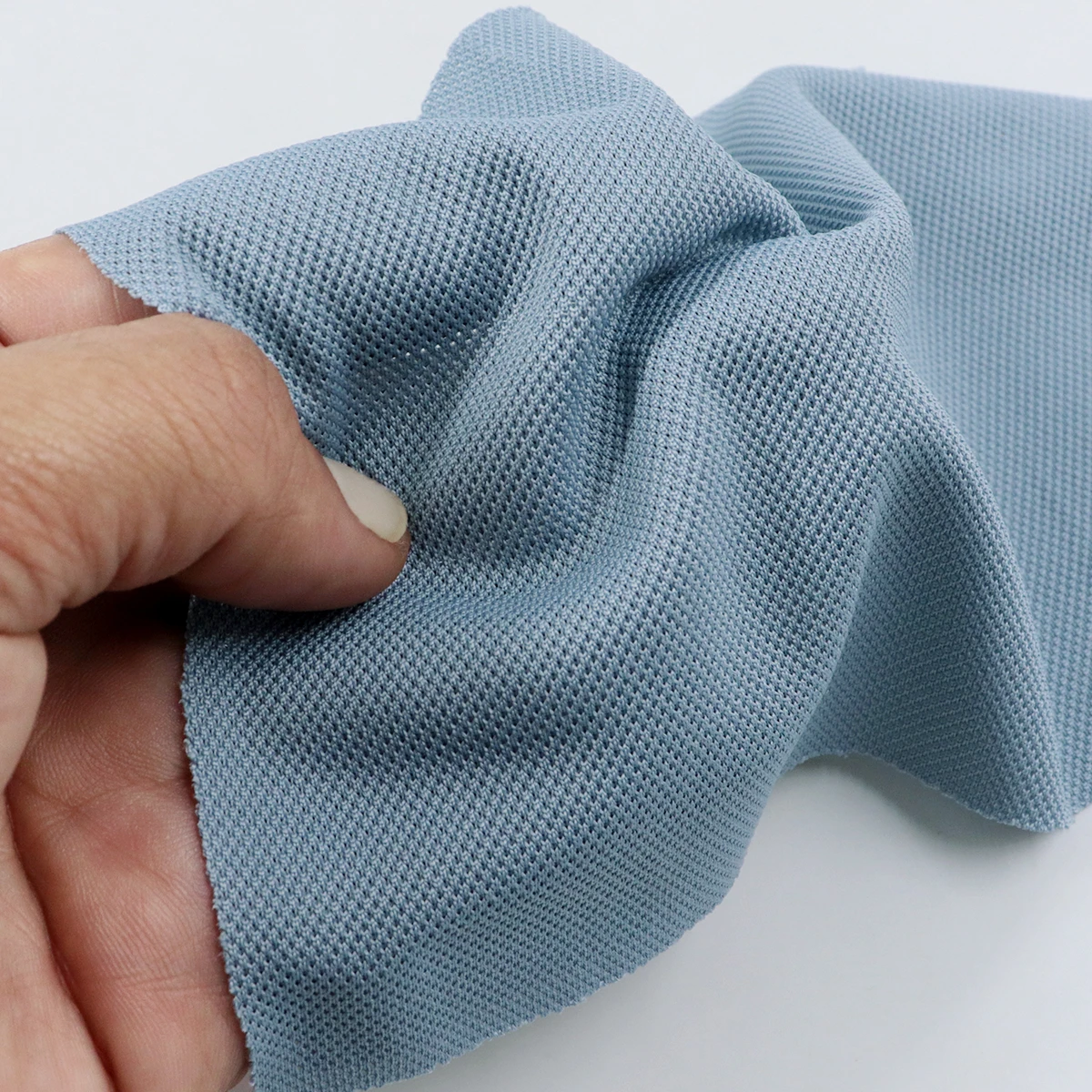 ผ้าลาครอส ผ้าโครงสร้าง Circular knit ลักษณะผิวผ้ามี Texture เป็นรูระบายห่วงโค้งๆ ทำให้ระบายอากาศ โปร่ง น้ำหนักเบา ยืดหยุ่นดี ทำความสะอาดง่ายไม่ขึ้นขน ขึ้นเม็ด เหมาะกับทำ เสื้อโปโล เสื้อยูนิฟอร์ม ผ้าสามารถรองรับงานพิมพ์ได้ทุกรูปแบบ