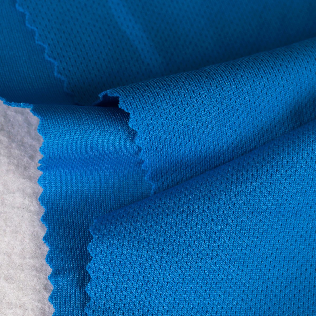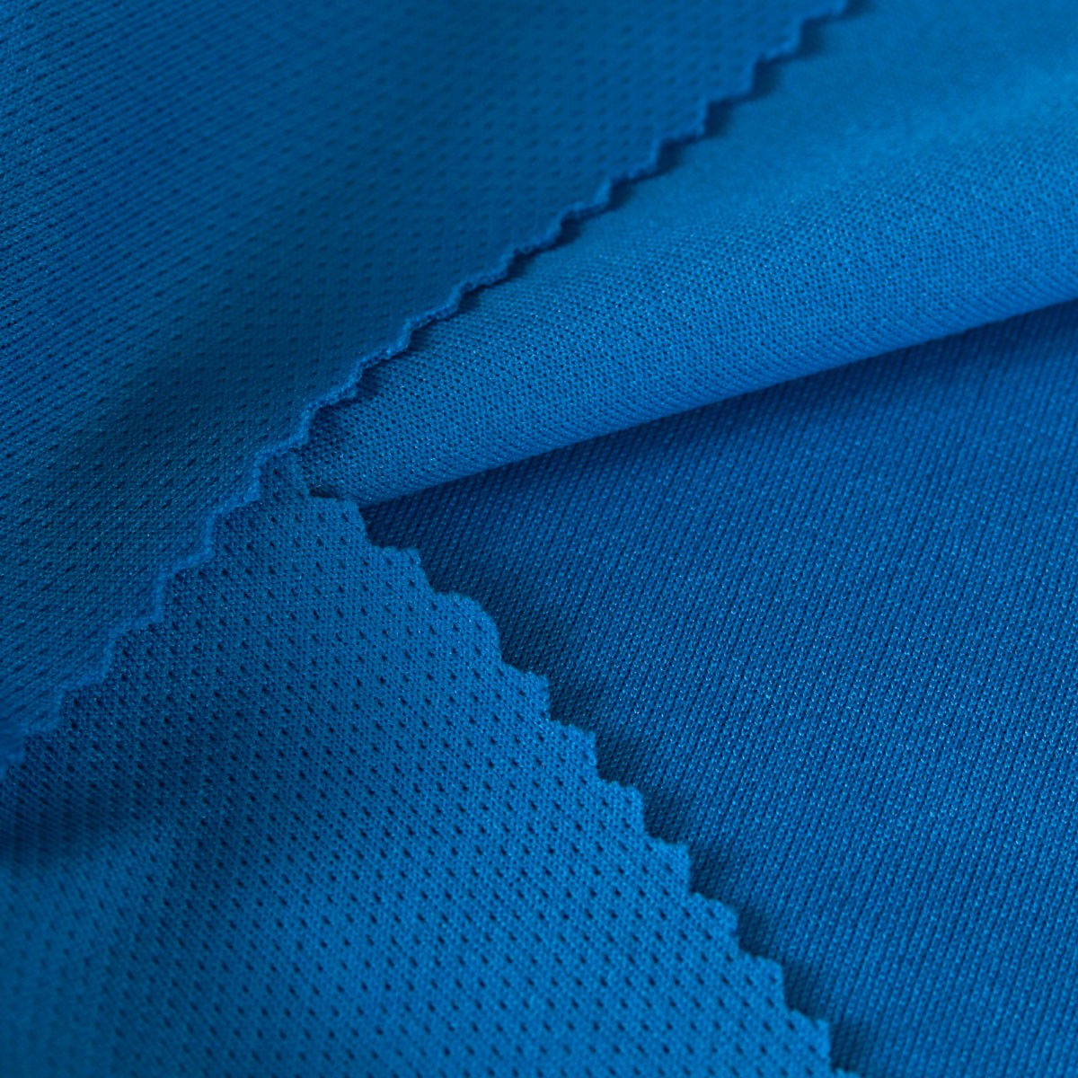 ผ้ากีฬาแบบมี Texture ลายจุด โครงสร้างด้านนึงเรียบ อีกด้านเป็นจุดแบบ Pin hole ช่วยระบายอากาศได้ดี ไม่ขึ้นขน ไม่ยับไม่ย้วย น้ำหนักเบา เหมาะสำหรับทำเสื้อออกกำลังกายเคลื่อนไหวคล่องตัว ระบายอากาศ ซักง่าย แห้งไว
