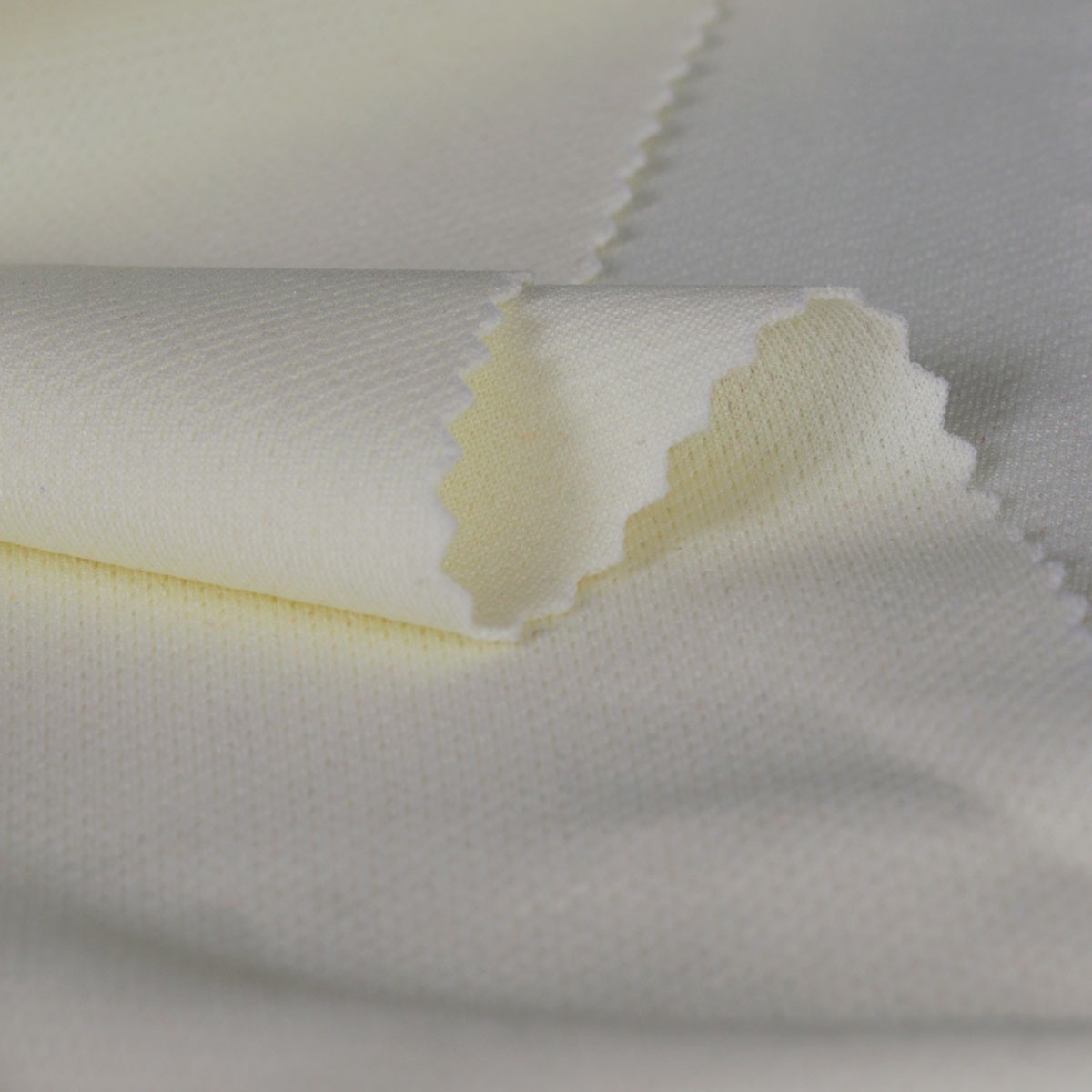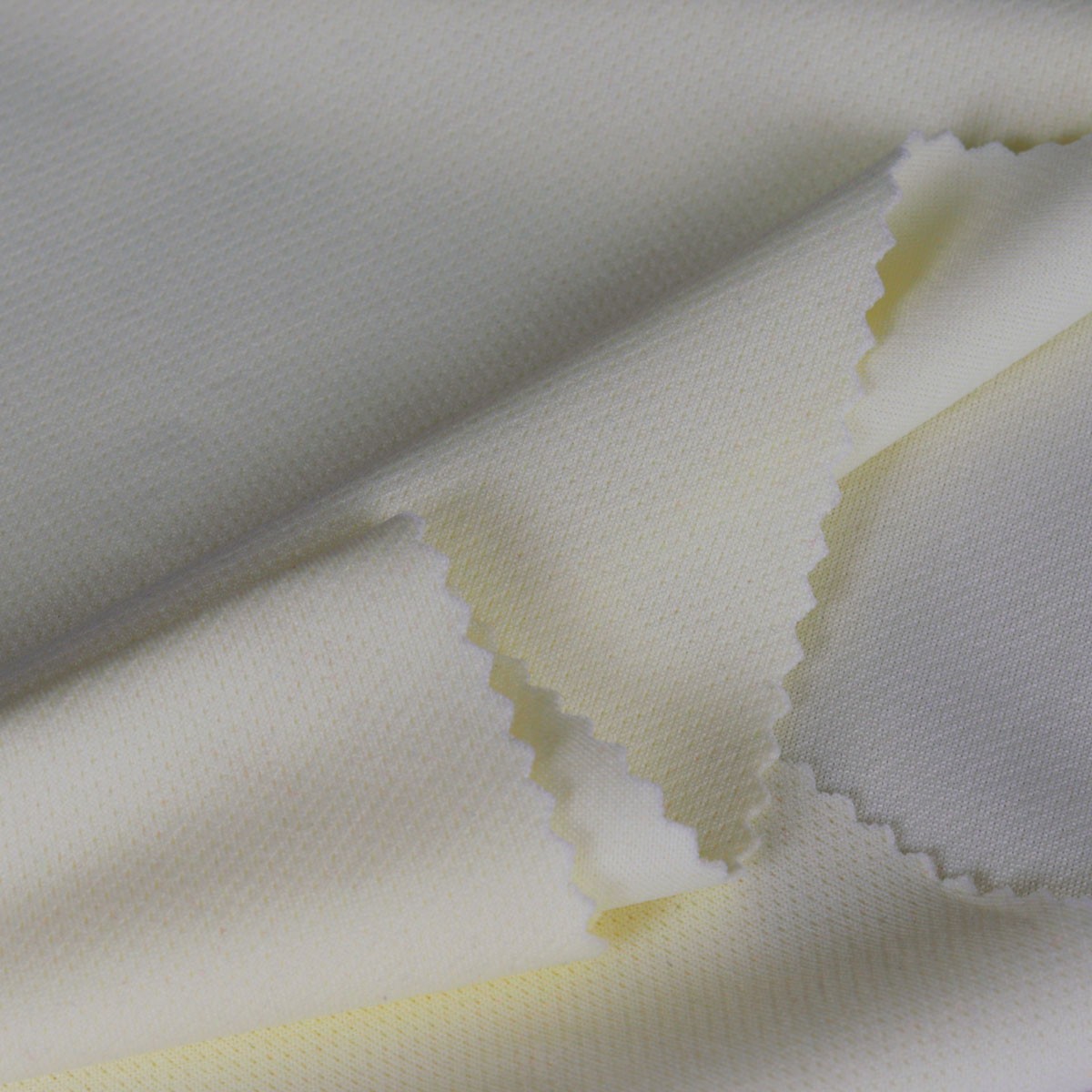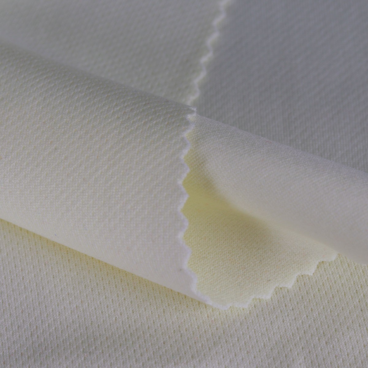 ผ้ากีฬาแบบมี Texture ลายจุด โครงสร้างด้านนึงเรียบ อีกด้านเป็นจุดแบบ Pin hole ช่วยระบายอากาศได้ดี ไม่ขึ้นขน ไม่ยับไม่ย้วย