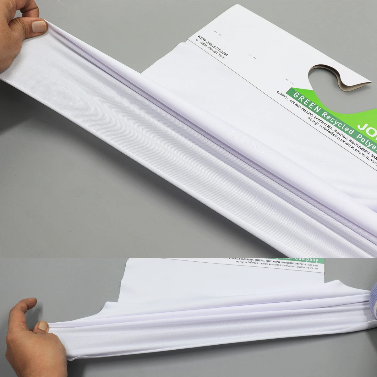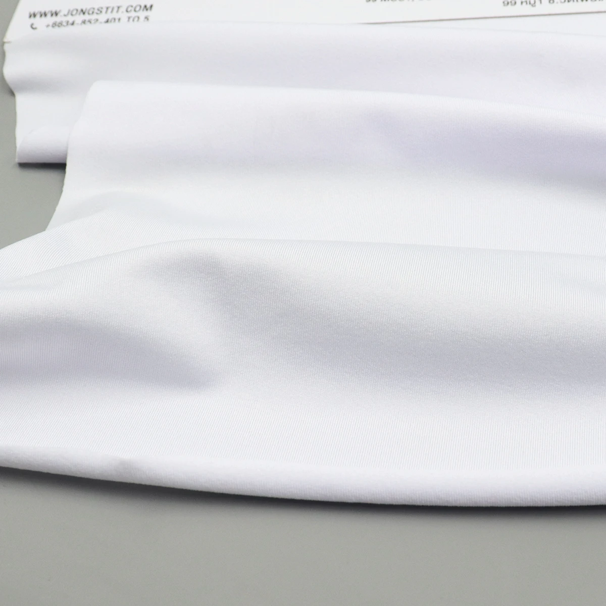 ผ้าสแปนเด็กซ์ Circular knit โพลีเอสเตอร์ 89% สแปนเด็กซ์ 11% ผ้ายืดหยุ่นดีมาก ยืดได้มาก 3-5 เท่า หดกลับมาเหมือนเดิมไม่ย้วย ผ้าสแปนเด็กซ์ เนื้อผ้ามีความโดดเด่นในเรื่องการระบายเหงื่อได้ดี ไม่หนา ไม่บาง ความหนากำลังดี ผ้าสามารถผ่านการพิมพ์ได้ทุกรูปแบบ เช่น ซับลิเดมชั่น ทรานเฟอร์ เหมาะสำหรับสินค้าที่ต้องการความยืด ชุดรัดรูป เสื้อ กางเกง ชุดชั้นใน กางเกงชั้นใน ก็สามารถทำได้