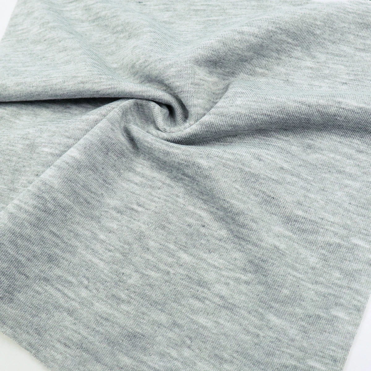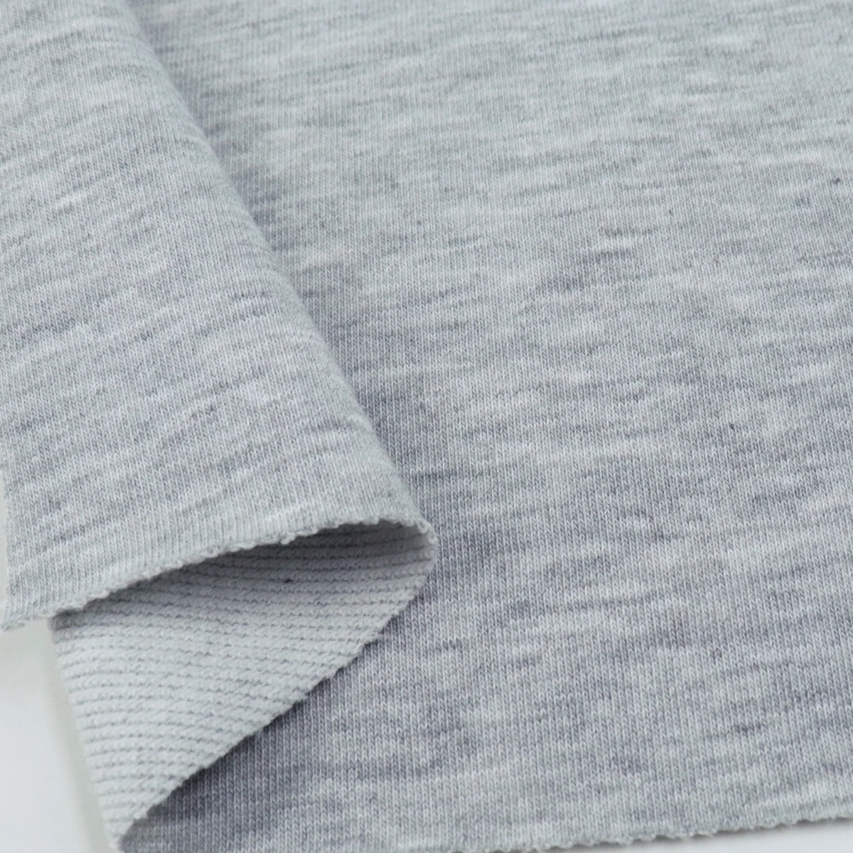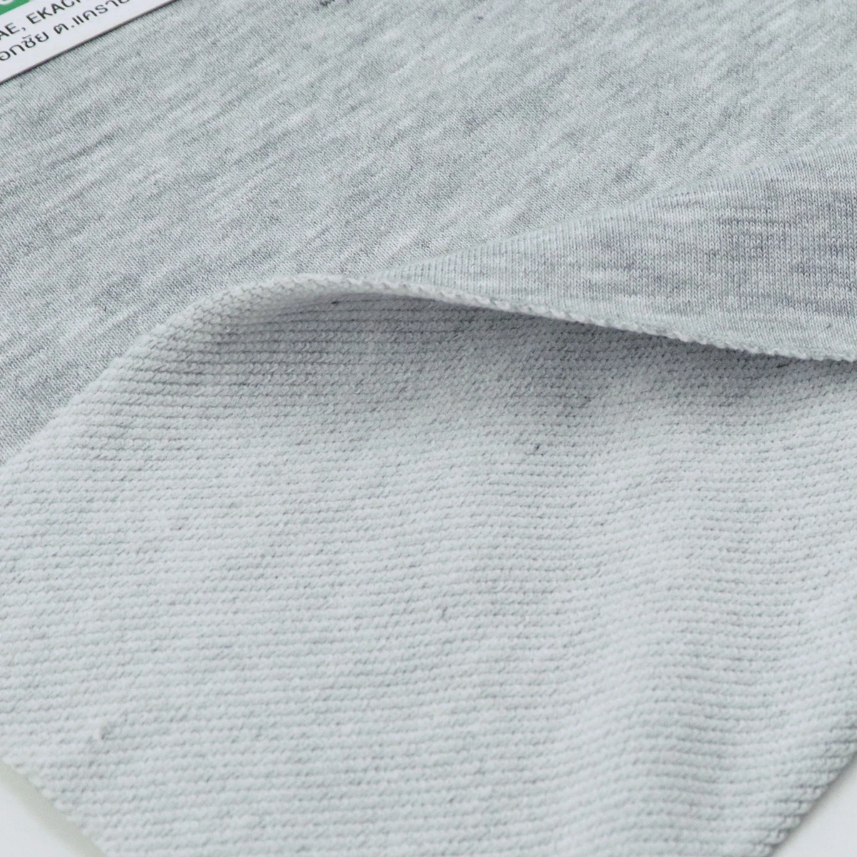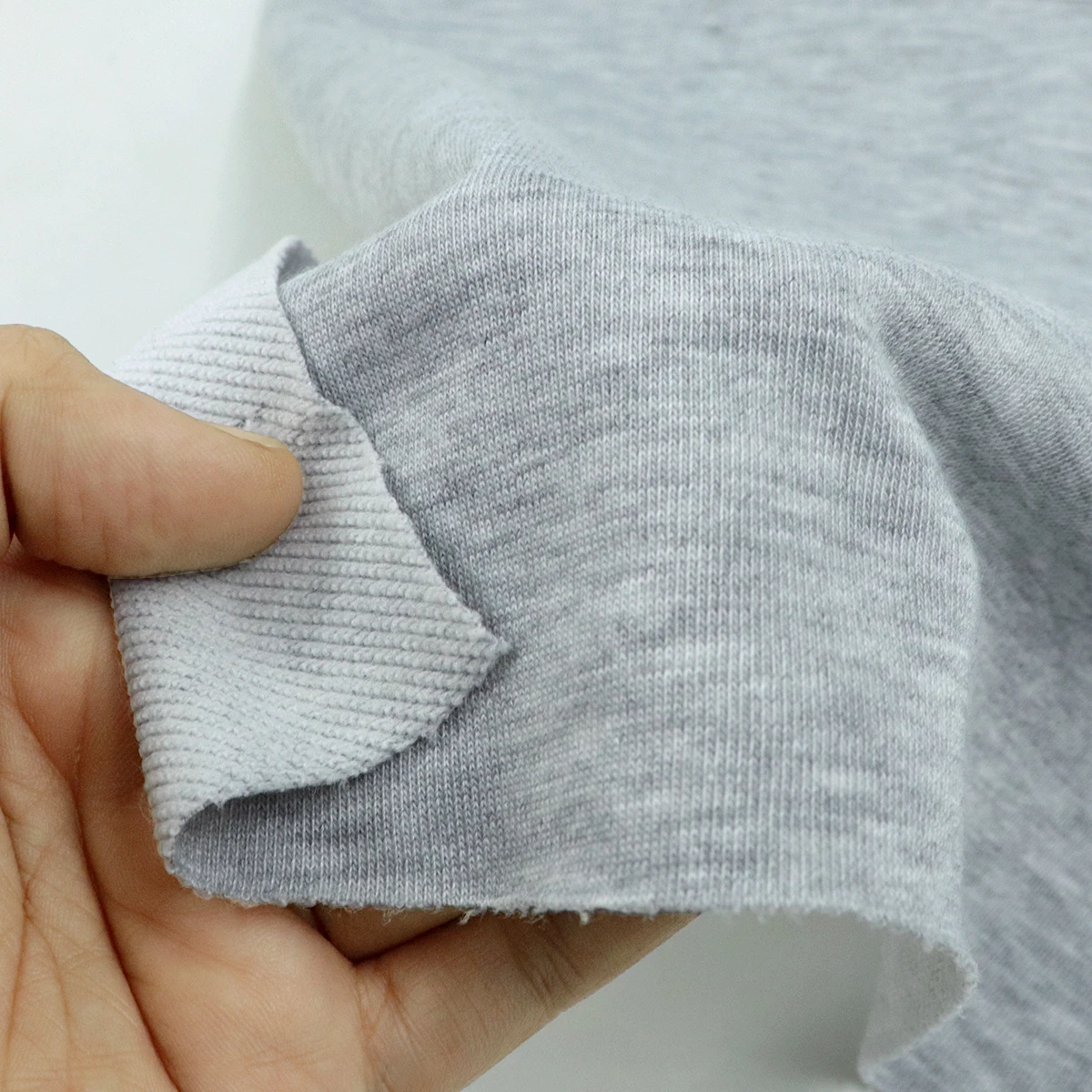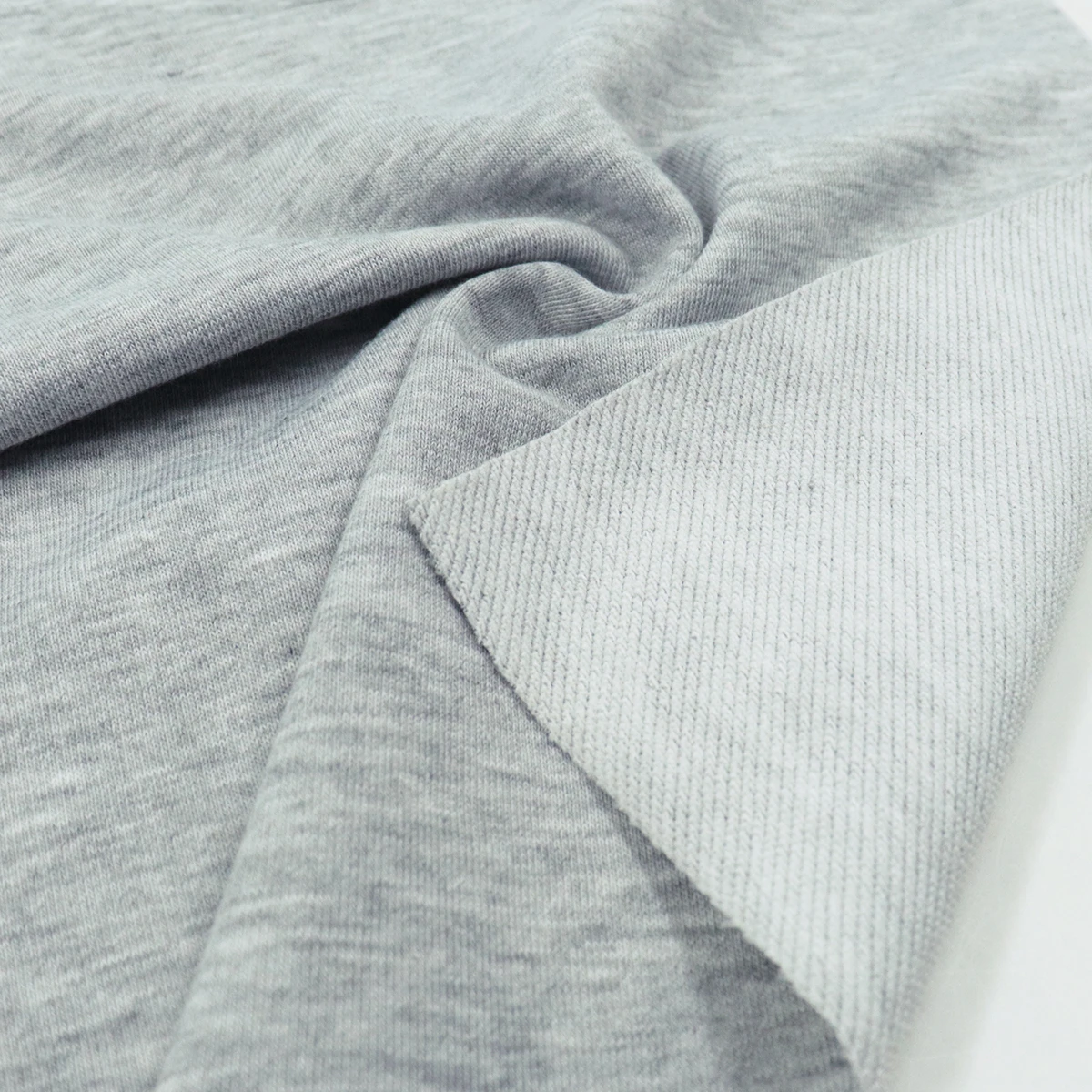 ผ้าเกล็ดปลา French Terry ด้านนึงเป็นผ้าเรียบสีเทาอ่อน ท็อปดายเฉด 1 เฉดอ่อนสุด อีกด้านนึงเป็นห่วงสีขาว ผ้าอยู่ทรง น้ำหนักดี เหมาะสำหรับทำ ผ้าเกล็ดปลากางเกงแฟชั่น ผ้าเกล็ดปลากางเกงวอร์ม เสื้อกันหนาวฮู้ดดี้ เสื้อแขนยาว เสื้อแฟชั่น ตัดได้หลากหลายแบบ ผ้าเกล็ดปลาฮิตมากในวัยรุ่น