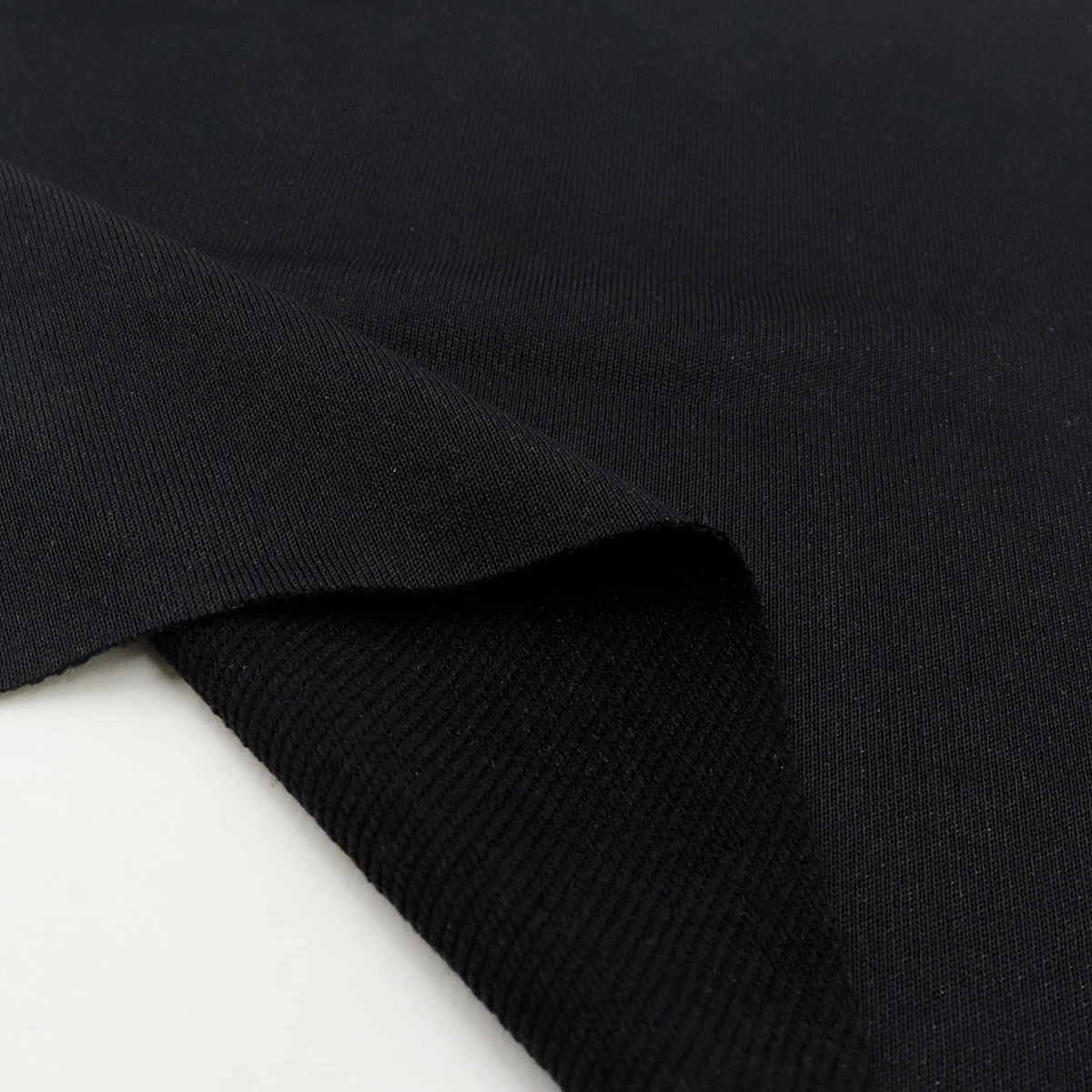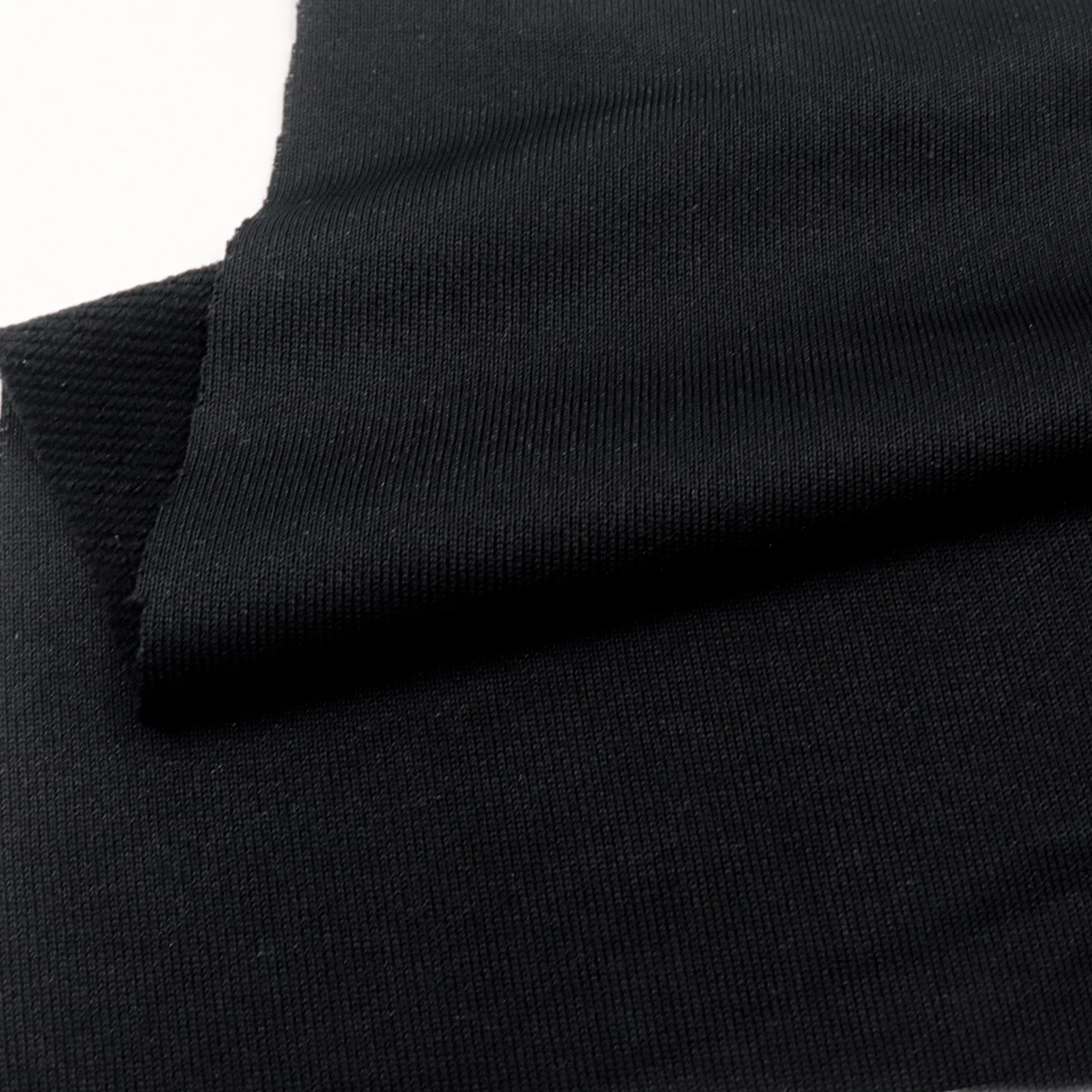 ผ้าเกล็ดปลา French Terry ผ้าเกล็ดปลาคือ ผ้าที่ทอโครงสร้าง Circular knit ผ้าด้านนึงเป็นผ้าเรียบ อีกด้านนึงเป็นห่วง ไอเทมนี้ มีสีดำทั้งสองหน้า ผ้ามีลักษณะอยู่ทรง น้ำหนักดี เหมาะสำหรับทำ กางเกงแฟชั่น ผ้าเกล็ดปลากางเกงวอร์ม เสื้อกันหนาว เสื้อแขนยาว เสื้อแฟชั่น จะมีความนุ่มฟู ผ้าเกล็ดปลาฮิตมาก