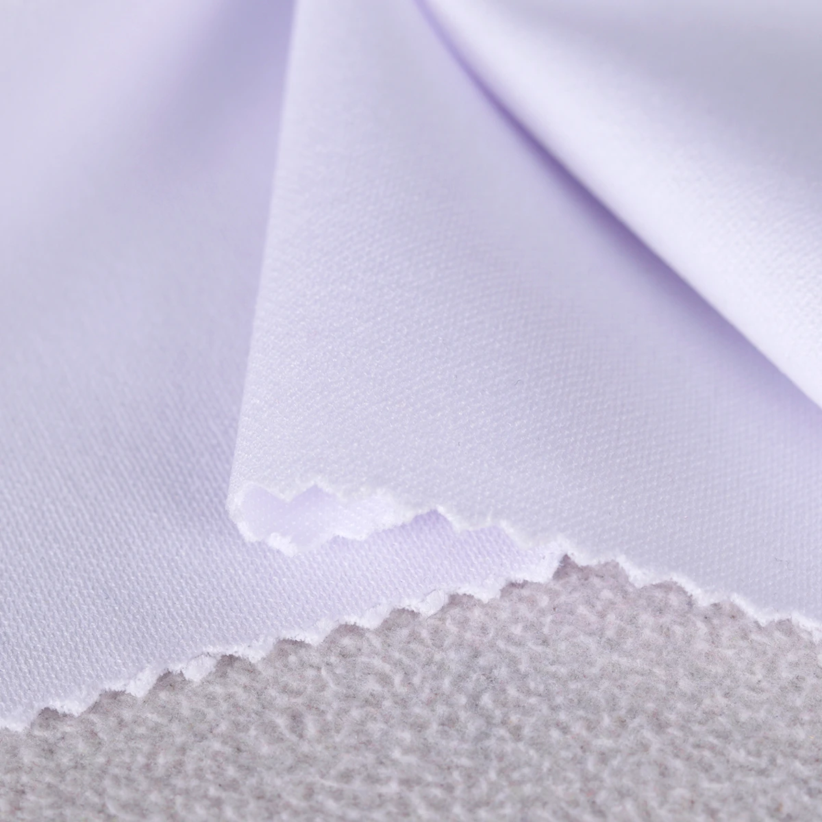 ผ้าวอร์มสกูบ้า วอร์มเนื้อละเอียด โครงสร้างการทอแบบละเอียด Circular knit ทำให้มีความยืดหยุ่นดี สวมใส่สบาย ยับยาก ไม่ขึ้นขน น้ำหนักเบา ยาวได้ถึง 3.3 หลา/กก. เหมาะสำหรับทำกางเกงวอร์มแฟชั่น วอร์มกีฬา ได้ทั้งขาสั้น และขายาว แจ็คเก็ตวอร์ม ผ้าโพลีเอสเตอร์ 100%