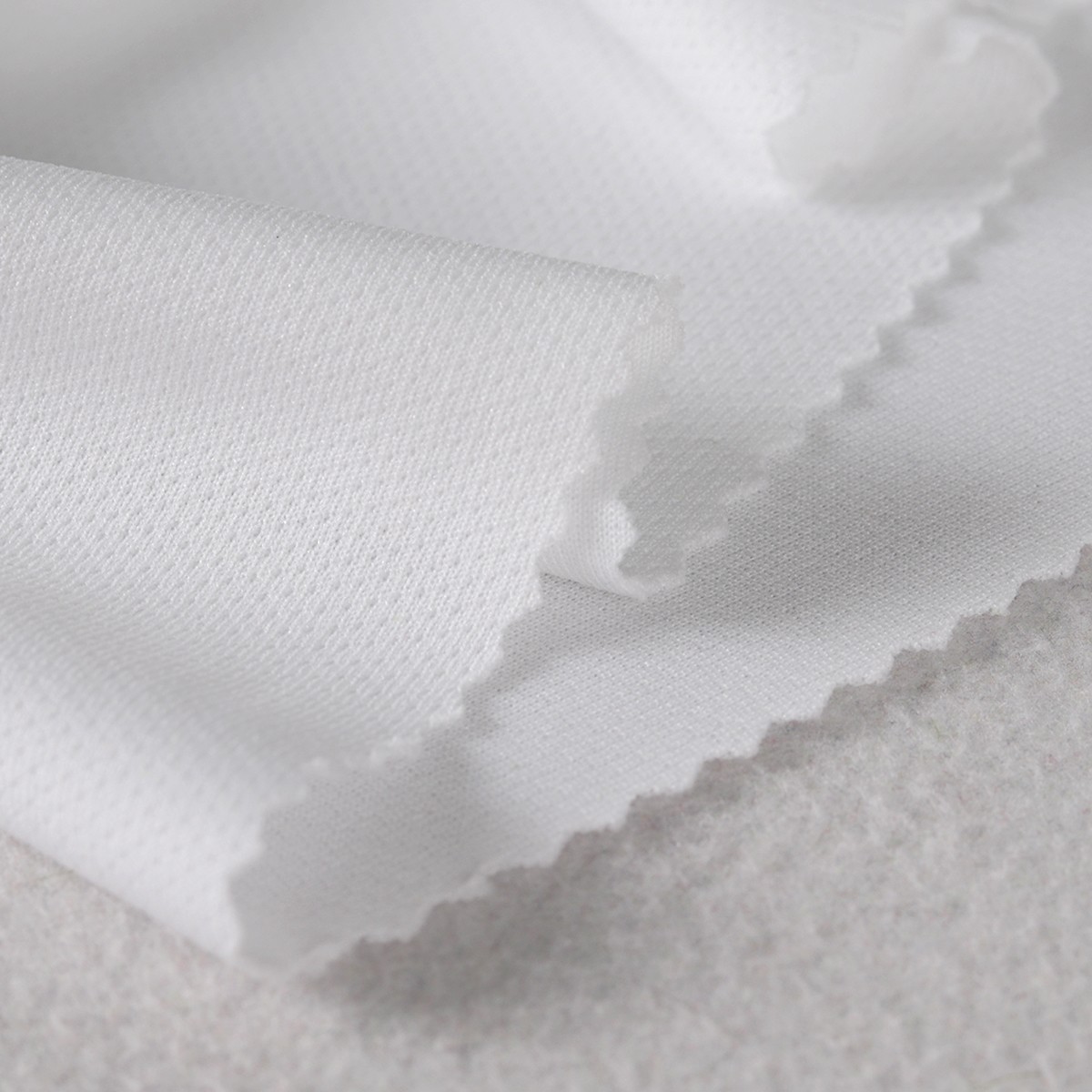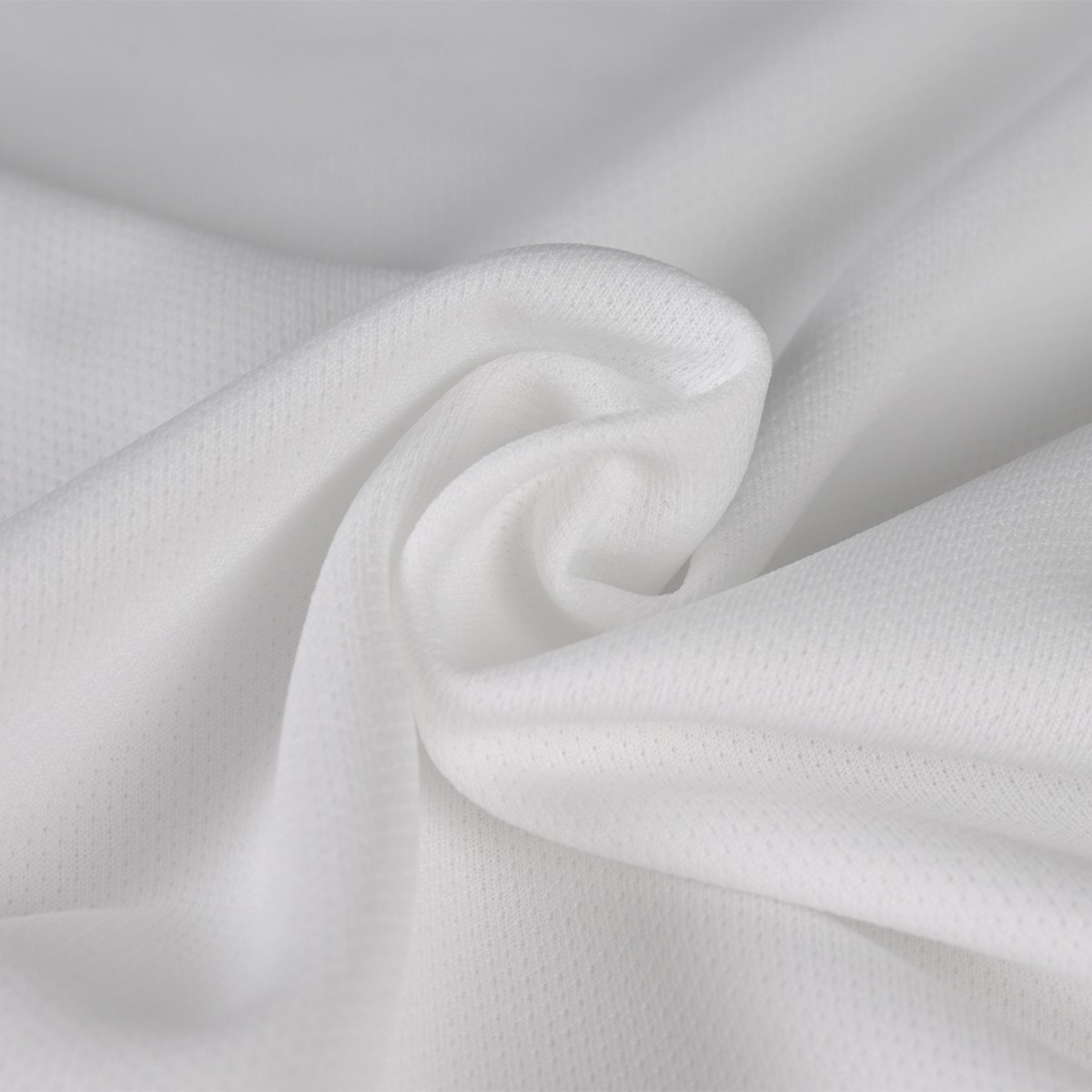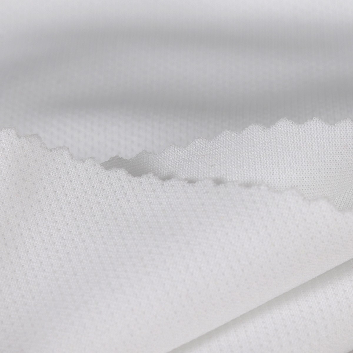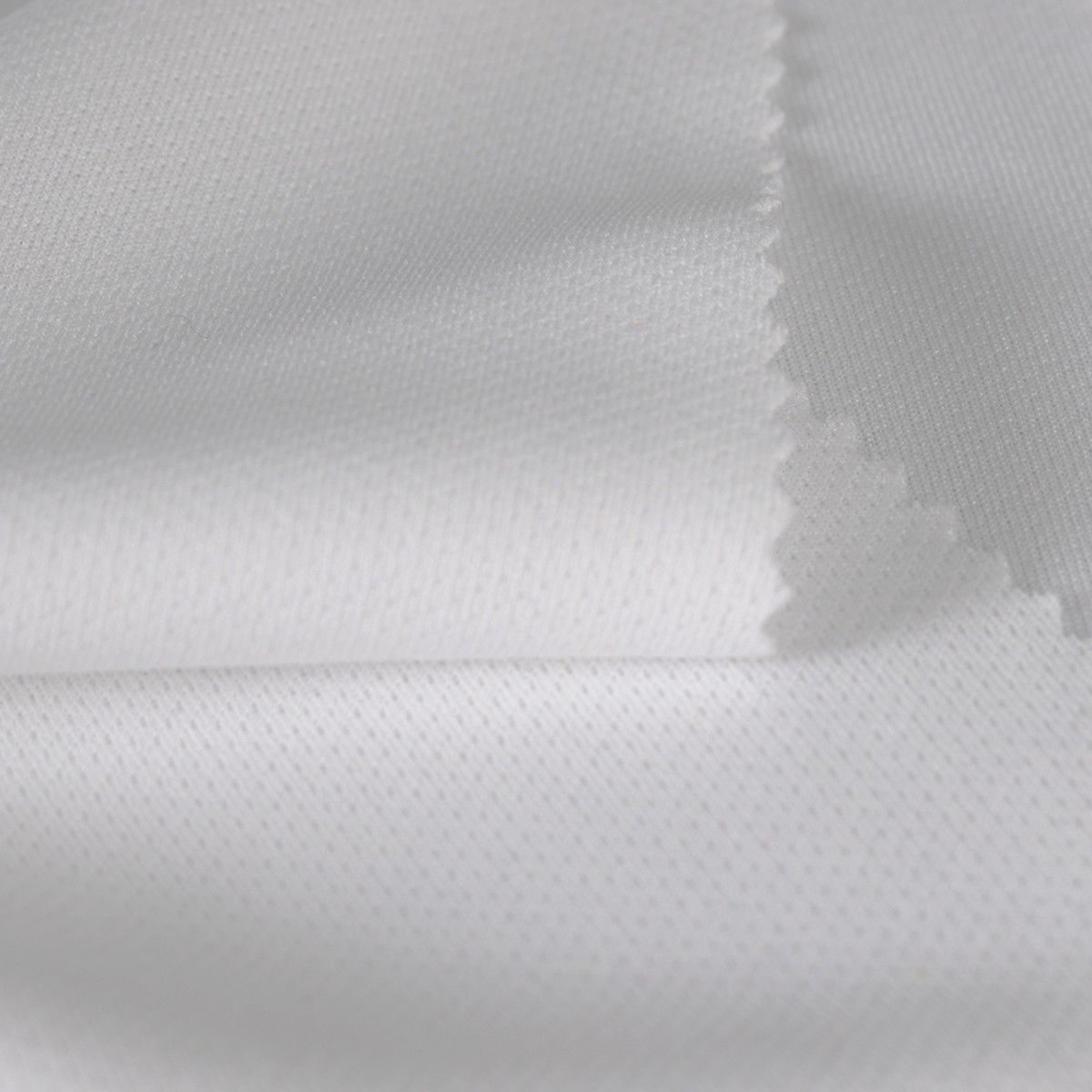 ผ้ากีฬาแบบมี Texture ลายจุด โครงสร้างด้านนึงเรียบ อีกด้านเป็นจุดแบบ Pin hole ช่วยระบายอากาศได้ดี ไม่ขึ้นขน ไม่ยับไม่ย้วย น้ำหนักเบา เหมาะสำหรับทำเสื้อออกกำลังกายเคลื่อนไหวคล่องตัว ระบายอากาศ ซักง่าย แห้งไว