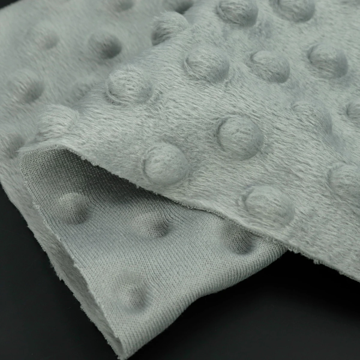 ผ้าemboss หรือผ้าอัดลาย มีลักษณะของการอัดลาย จุดกลมๆ ทำให้ผ้ามีลายยกนูนขึ้น ให้ผิวสัมผัสที่ดีแตกต่างกับผ้าขูดขนอื่นๆ เนื้อผ้าสวย นุ่ม มีลายพิเศษไม่เหมือนผ้าธรรมดาทั่วไป ทำให้เป็นผ้าลักษณะพิเศษ สามารถตัดทำผ้าห่ม เสื้อกันหนาว สินค้าพรีเมี่ยมได้ ผ้าน้ำหนักเบา ซักเครื่องได้ แห้งไว โพลีเอสเตอร์ 100%