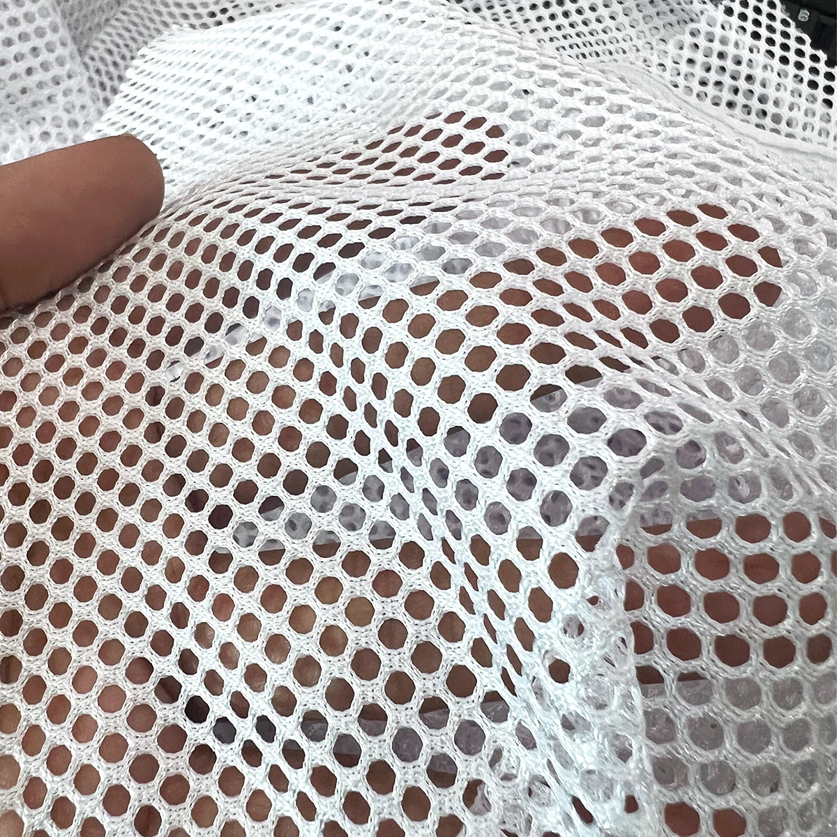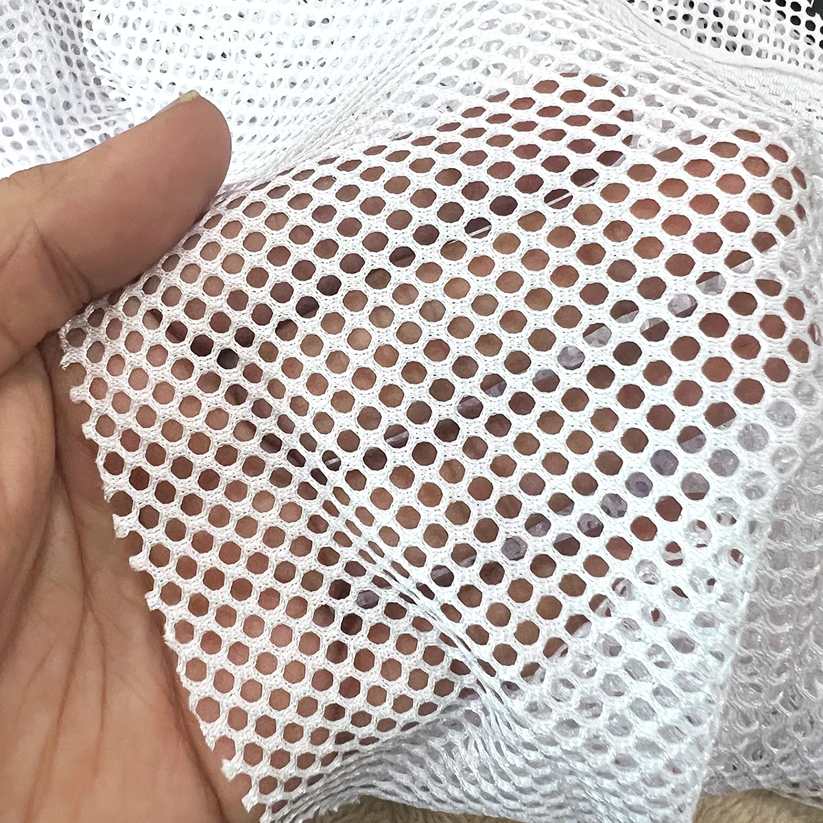 ผ้าตาข่ายโพลีเอสเตอร์คุณภาพสูง ขนาดรูประมาณ 2-3 mm เนื้อแน่น ทนทาน ระบายอากาศดีเยี่ยม เหมาะสำหรับงานตัดเย็บเสื้อกีฬา เสื้อทีม งานตกแต่งภายใน หรืองานหุ้มสินค้า สามารถซักทำความสะอาดง่าย แห้งเร็ว สีไม่ตก ไม่ยืดง่าย ใช้งานได้นาน คุ้มค่าในราคาส่งจากโรงงาน เหมาะสำหรับผู้ประกอบการและร้านตัดเย็บที่ต้องการผ้าตาข่ายในปริมาณมาก หรือผู้ที่มองหาผ้าเกรดพรีเมียมในราคาย่อมเยา