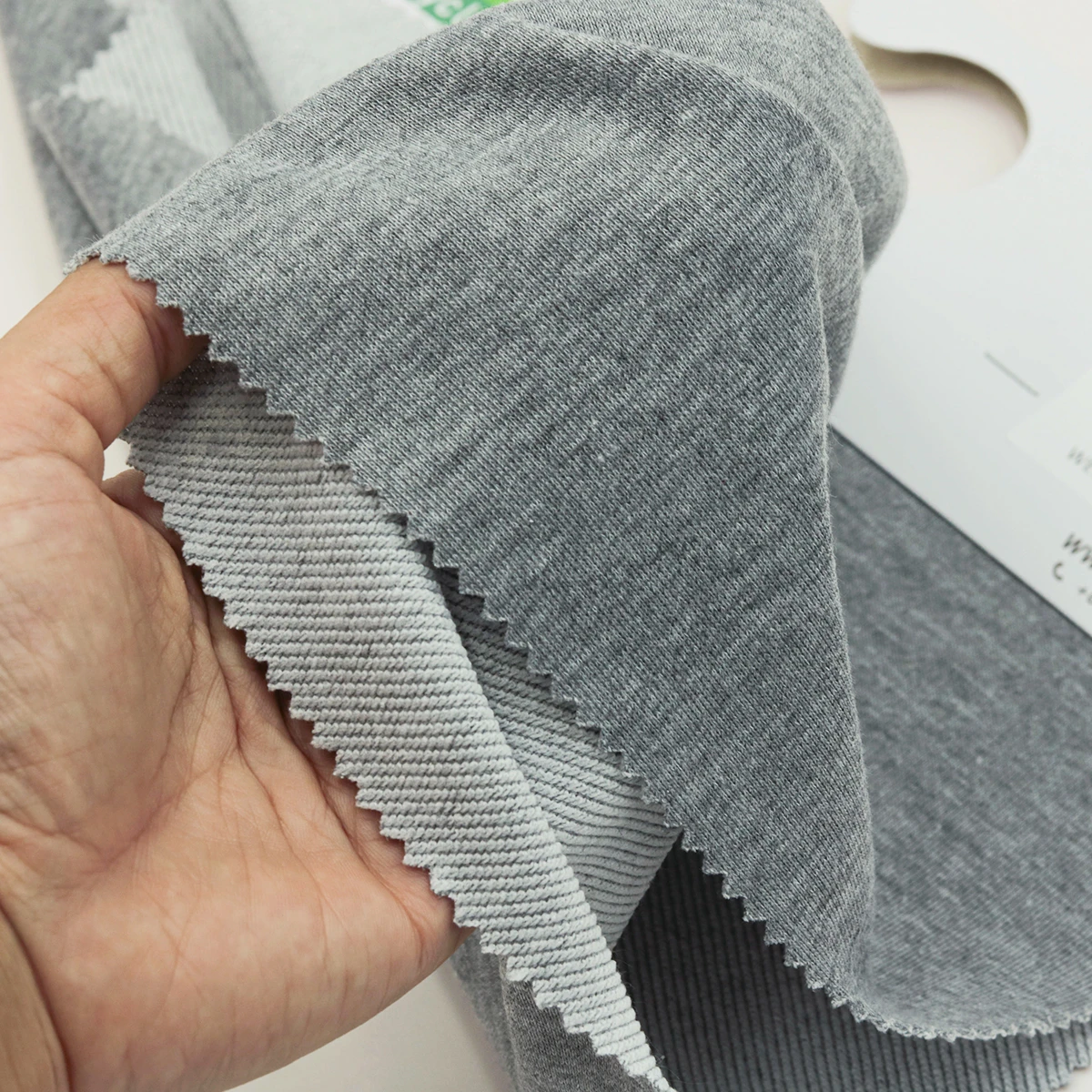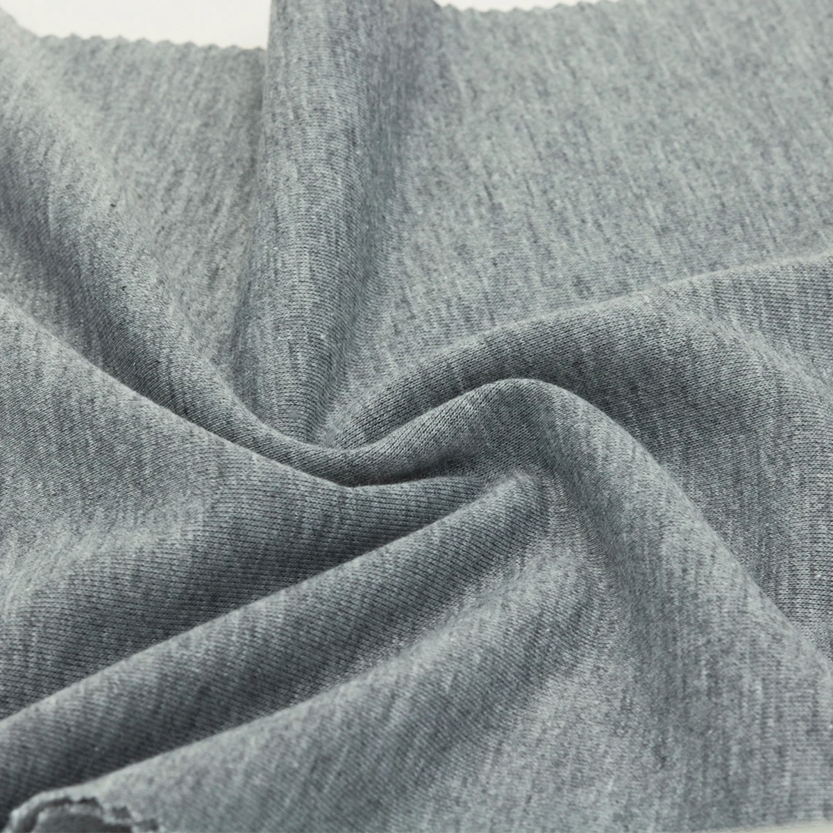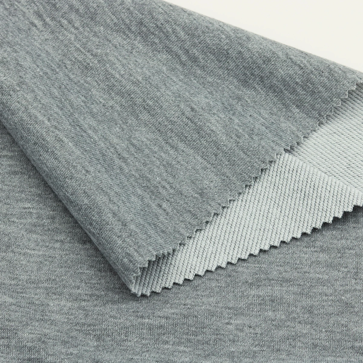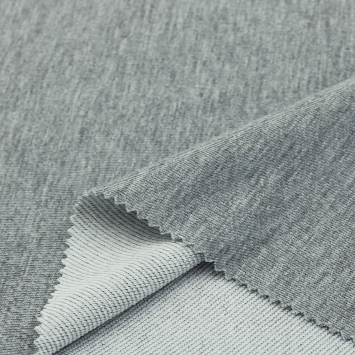 ผ้าเกล็ดปลา French Terry ด้านนึงเป็นผ้าเรียบสีเทาอ่อน ท็อปดายเฉด 3 เฉดกลางๆ อีกด้านนึงเป็นห่วงสีขาว ผ้าอยู่ทรง น้ำหนักดี เหมาะสำหรับทำ ผ้าเกล็ดปลากางเกงแฟชั่น ผ้าเกล็ดปลากางเกงวอร์ม เสื้อกันหนาวฮู้ดดี้ เสื้อแขนยาว เสื้อแฟชั่น ตัดได้หลากหลายแบบ ผ้าเกล็ดปลาฮิตมากในวัยรุ่น ผ้ารองรับงานพิมพ์ได้หลายรูปแบบ เป็นโพลีเอสเตอร์ 100%