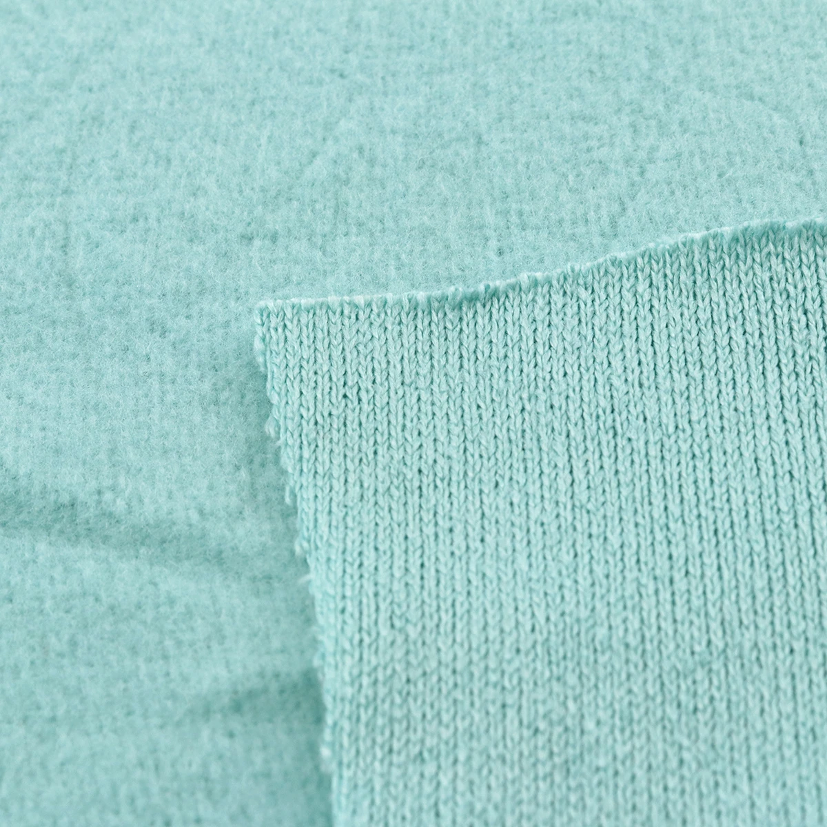 ผ้าฟลีซสเวตเตอร์ 1 หน้า โครงสร้าง Circular knit ผ้ายืดหยุ่นดี ด้านนึงขูดขน อีกด้านเป็นผ้าถักแบบสเวตเตอร์ น้ำหนักเบา เหมาะกับทำกางเกงแฟชั่น ผ้าห่ม เสื้อผ้า ชุดเช็ท