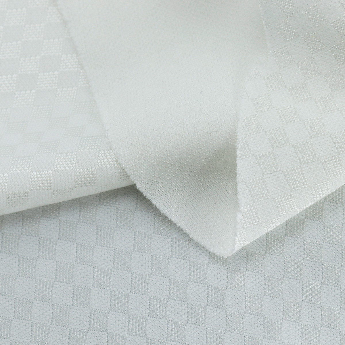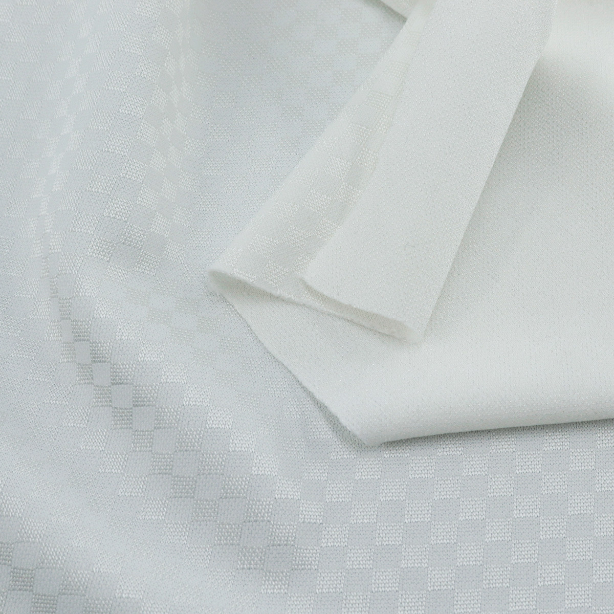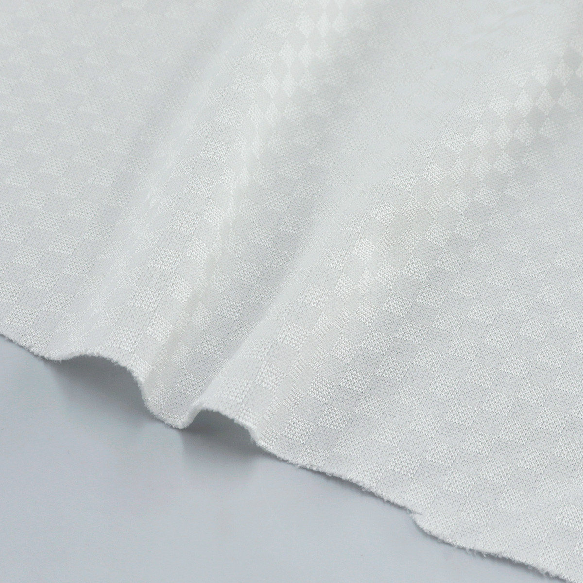 ผ้าแจ็คการ์ด ลายตาราง ผ้ามีความเงา มีลายบนผิวผ้า เหมาะสำหรับทำเสื้อกีฬา กางเกงกีฬาได้ ผ้าโครงสรา้งแข็งแรง ไม่รัน ไม่หด ไม่ย้วย ยับยาก ผ้าทำความสะอาดง่ายแห้งไว ผ้าสามารถรองรับงานพิมพ์ซับลิเมชั่น พิมพ์ต่างๆ ได้