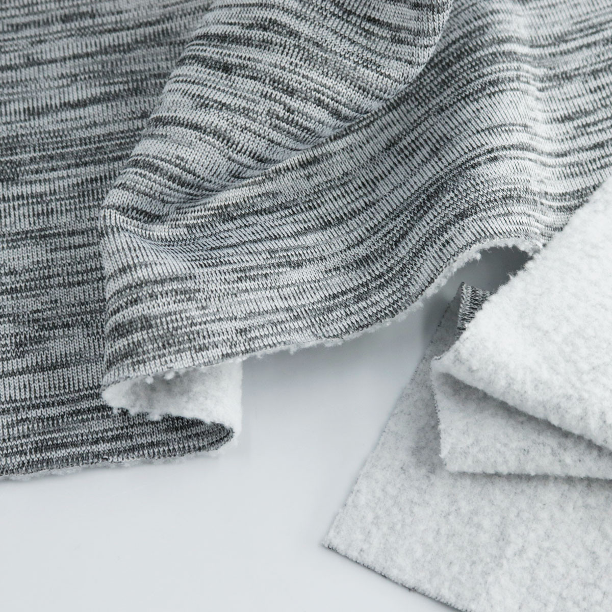 ผ้าฟลีซขูดขน 1 หน้า อีกหน้าเป็นผ้าเรียบ แบบมิล้านซ์ Grey Melange ผลิตจากผ้าโพลีเอสเตอร์รีไซเคิล มีลักษณะนุ่มมาก น้ำหนักเบา บางแต่อุ่นสบาย เหมาะกับงานการ์เมนท์ เสื้อแขนยาว เสื้อฮูด เสื้อตัวนอก ให้ความอบอุ่นได้เป็นอย่างดี กางเกงขายาว ใส่ให้ความอบอุ่นดีค่ะ